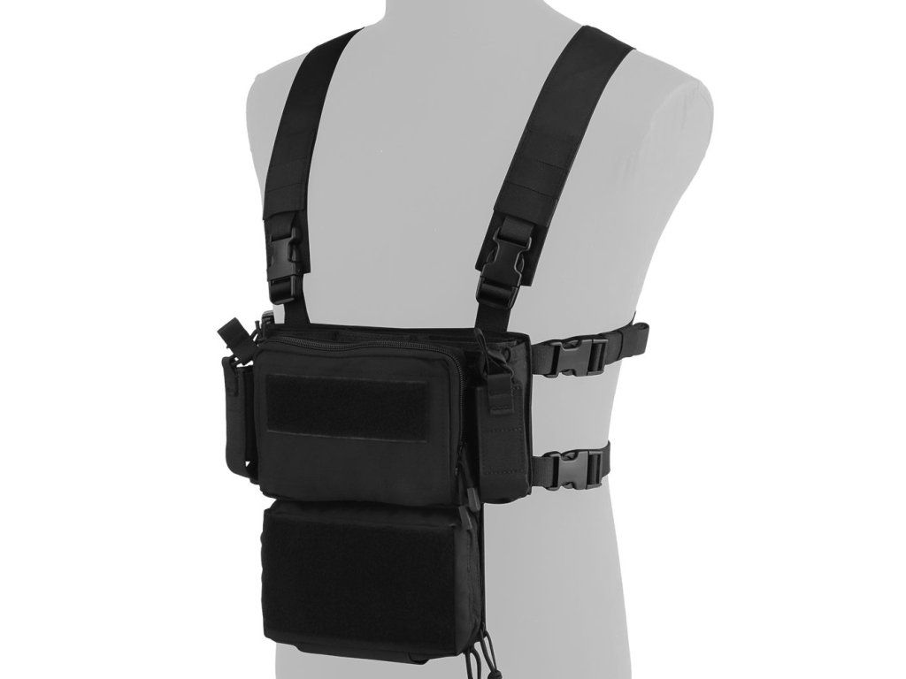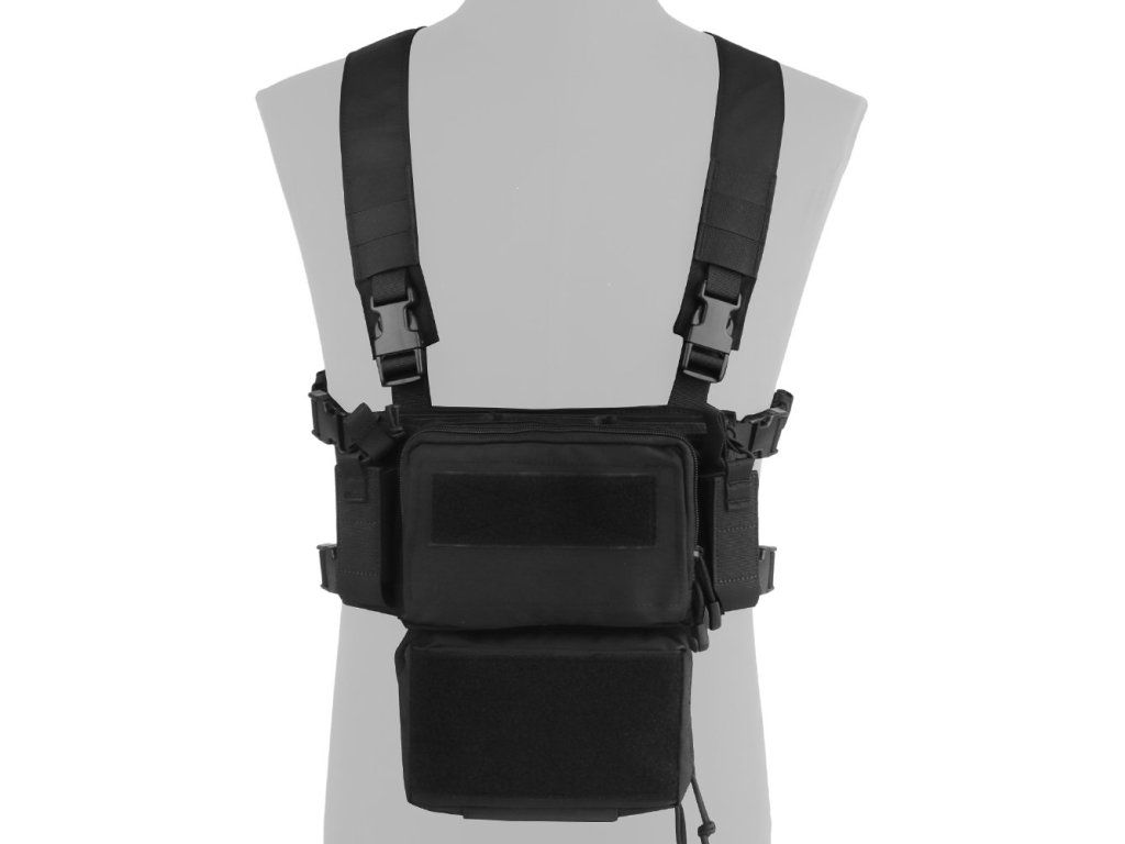 Moderní a lehká taktická hrudní souprava typu D3CRM, vyrobená z odolného nylonu. Díky nastavitelným upínacím sponám a plně nastavitelnému popruhu nabízí vysoký komfort nošení a variabilitu použití. Ideální volba pro airsoftové hry, výcvik a taktické aktivity. Chest rig se vyznačuje kompaktním designem, přesto nabízí dostatek úložného prostoru pro zásobníky a příslušenství. Je kompatibilní s nosiči plátů vybavenými úchytem na přední panel, což umožňuje rychlou integraci do vaší výstroje.
