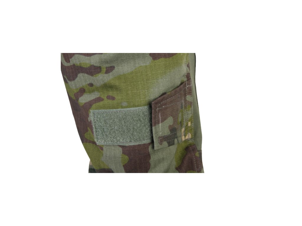 Maskáčová souprava od EmersonGear s promyšleným střihem a moderním maskováním. Souprava je vyrobena z kombinace bavlny a polyesteru RipStop 35% / 65% s přídavkem teflonu, tato úprava odpuzuje vodu a olejové skvrny, čímž zvyšuje vodoodpudivost a snižuje špinivost oděvu. Údržba oděvu je snazší díky tomu, že se usazené nečistoty snadno vyperou a materiál rychleji schne.