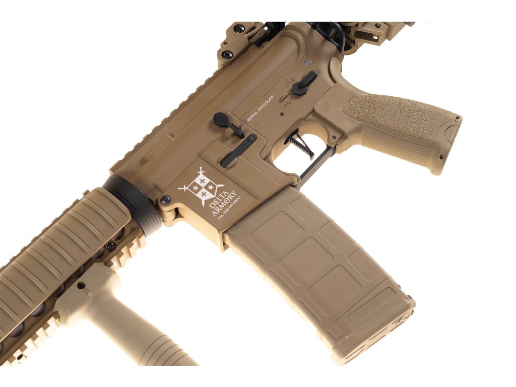 Delta Armory airsoft zbraň AR15 CQB-R ALPHA Full Metal - Full Tan