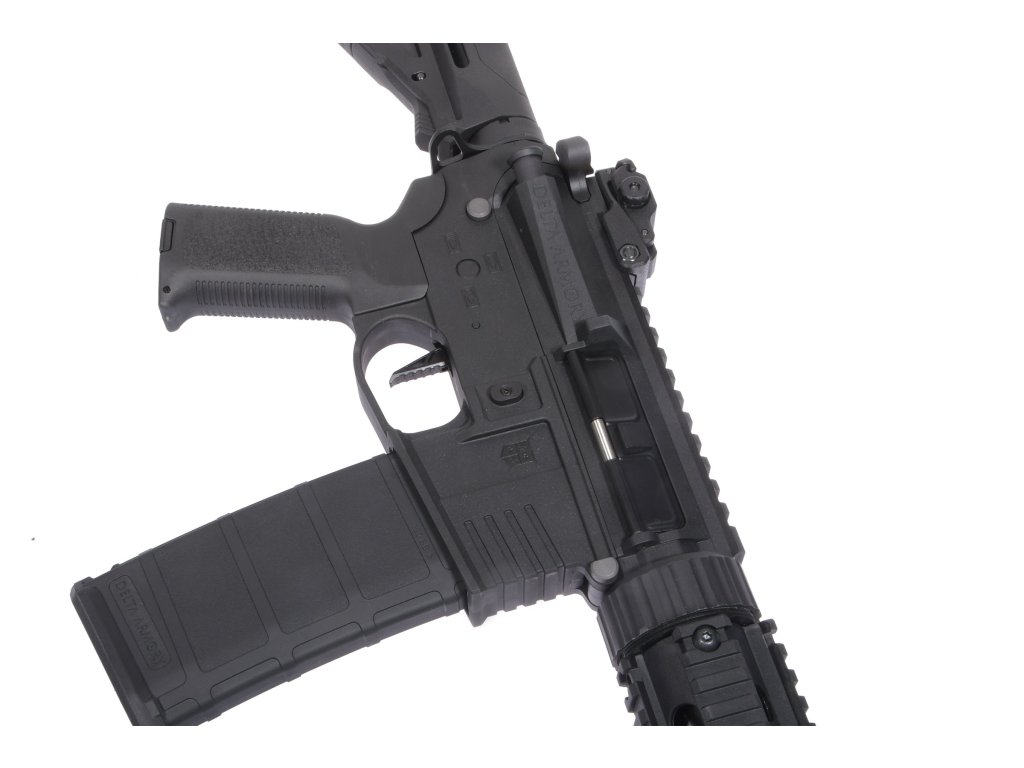 Novinkou v řadě Eagle je také nová pažba Delta Stock v.2, která má moderní design a pogumovanou pažbu pro pohodlnější míření. Současně řada Eagle obsahuje také novou pistolovou rukojeť v.2, která má lepší design, ale také propracovanější systém regulace přítlaku motoru než první verze. Zbraň AR15 SilentOps 7" Charlie je vyrobena z odolného ABS polymeru, který má mnohem lepší vlastnosti než tradiční plast. Současně jsou očko závěsu a spoušť vyrobeny z kovu. Vnitřní části zbraně jsou standardní jako u klasické řady DA: píst SHS s celokovovým ozubením, rukojeť kolečka pístu SHS, otočná hop-up komora a přesná hlaveň 6,03 mm. Výhodou této pistole je rychlovýměnná pružina QRS Gen. 2 - výměna pružiny bez nutnosti rozebírat pistoli a rychlá výměna motoru QRS. Samozřejmostí jsou vnitřní díly: kovová kluzná 7mm ložiska, odolná kovová kolečka a páka podavače SHS. Součástí balení je zbraň a tlačný středový zásobník DMAG na 120 nábojů. Pro zásobník rychle doporučujeme náplň 100 BB od společnosti Delta Armory.