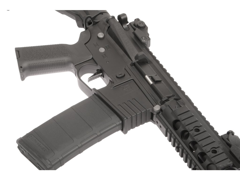Novinkou v řadě Eagle je také nová pažba Delta Stock v.2, která má moderní design a pogumovanou pažbu pro pohodlnější míření. Současně řada Eagle obsahuje také novou pistolovou rukojeť v.2, která má lepší design, ale také propracovanější systém regulace přítlaku motoru než první verze. Zbraň AR15 SilentOps CQB Alpha má CELOKOVOVOU konstrukci, kdy je celá zbraň (předpažbí, tělo, spoušť, poutko na popruh a další menší vnější části) vyrobena z kovu. Tlumič obsahuje pěnu pohlcující nárazy. Model Silentops CQB je ideální pro hry CQB. Zbraň je vybavena nastavitelným zadním mířidlem, upevněným na liště RIS. Vnitřní části zbraně jsou standardní jako u klasické řady DA: píst SHS s celokovovým ozubením, rukojeť kolečka pístu SHS, otočná hop-up komora a přesná hlaveň 6,03 mm. Výhodou této zbraně je rychlovýměnná pružina QRS gen. 2 - výměna pružiny bez nutnosti rozebírat zbraň a rychlá výměna motoru QRS. Samozřejmostí jsou vnitřní díly: kovová kluzná 7mm ložiska, odolná kovová kolečka a páka podavače SHS. Součástí balení je zbraň a tlačný středový zásobník DMAG na 120 nábojů. Pro zásobník rychle doporučujeme náplň 100 BB od společnosti Delta Armory.
