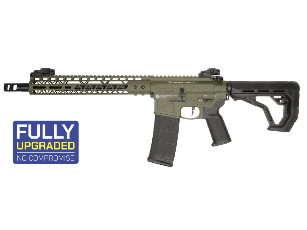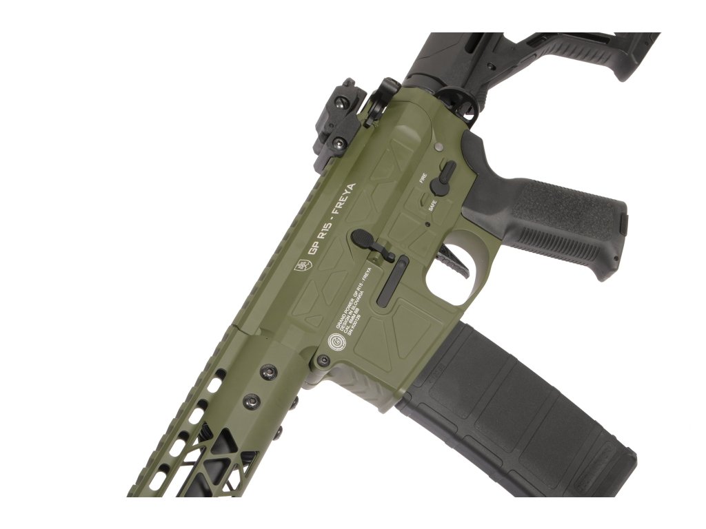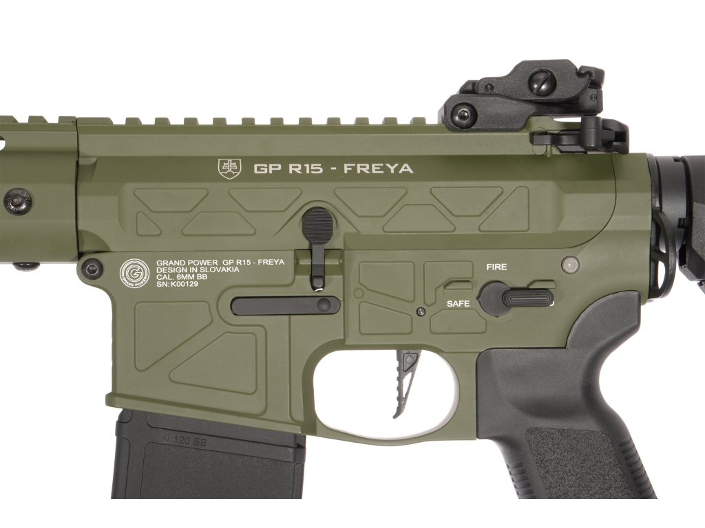 Druhá generace nejžádanější řady FREYA. Generace 2 získala Full Upgrade - No Compromise od Delta Armory. R15 FREYA jsou licencované airsoftové repliky skutečných zbraní od slovenského výrobce Grandpower. Liší se především moderním designem těla zbraně, které bylo navrženo na Slovensku. Delta Armory přidala do řady FREYA svou nejnovější opticko-magnetickou procesorovou jednotku Eagle ETU, která zajišťuje rychlou odezvu spouště a zároveň je zbraň připravena pro použití s 11,1 LiPo akumulátory (Akumulátor se vkládá do zásobní trubice, konkrétně doporučujeme Delta Armory 11,1V/1100mAh). Samozřejmostí je konektor Deans-T, který nahradil klasický konektor Tamiya. Jednotka Eagle ETU umožňuje nejen nastavení citlivosti spouště prostřednictvím procesorové jednotky, ale také délky dráhy spouště prostřednictvím nastavitelného šroubu umístěného přímo v krytu spouště. Jednotka ETU sleduje stav baterie, v případě nedostatečného nebo nadměrného nabití může vypnout a chránit tak baterii, což je signalizováno zvukovým signálem. Procesor je zároveň vybaven funkcí aktivní brzdy. Novinkou v řadě FREYA je také nová pažba Delta Stock v.2, která má moderní design a pogumovanou pažbu pro pohodlnější míření. Současně řada FREYA obsahuje také novou pistolovou rukojeť v.2, která má lepší design, ale také propracovanější systém regulace přítlaku motoru než první verze.