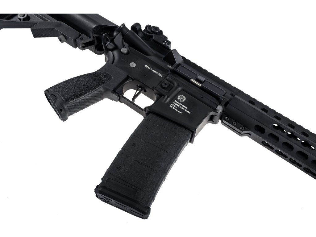 Nejnovější generace AR15 - M4 od výrobce Delta Armory. Řada DA-GP je v licenci slovenského výrobce skutečných zbraní Grandpower, který v roce 2022 zahájil výrobu ostrých zbraní M4/AR15, díky čemuž najdete na těle zbraně logo Grandpower. Řada ALPHA se vyznačuje především svou FULL METAL konstrukcí, kdy je celá zbraň (předpažbí, tělo, spoušť, poutko na popruh a další menší vnější části) vyrobena z kovu. Spoušť je typu CNC A, což urychluje reakční dobu zbraně. Zbraň má také unikátní sériové číslo. Pažba je mnohem lépe navržena než u jiných značek v podobné cenové relaci a vkládání baterie je mnohem pohodlnější. Na zbrani jsou 22mm lišty RIS, na které lze připevnit různé příslušenství. Na liště RIS je namontována stavitelná zadní muška. Hlaveň je zakončena 14mm levotočivým závitem. Předpažbí je typu KEYMODE o délce 12,2 palce (31 cm), jehož výhodou oproti běžnému RIS předpažbí je, že je lehčí, zároveň lze RIS lišty, které jsou na něm umístěny, podle potřeby přesouvat.