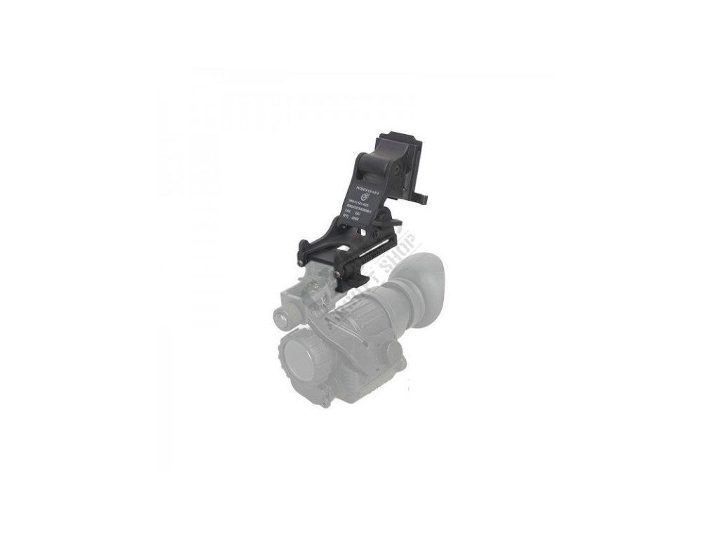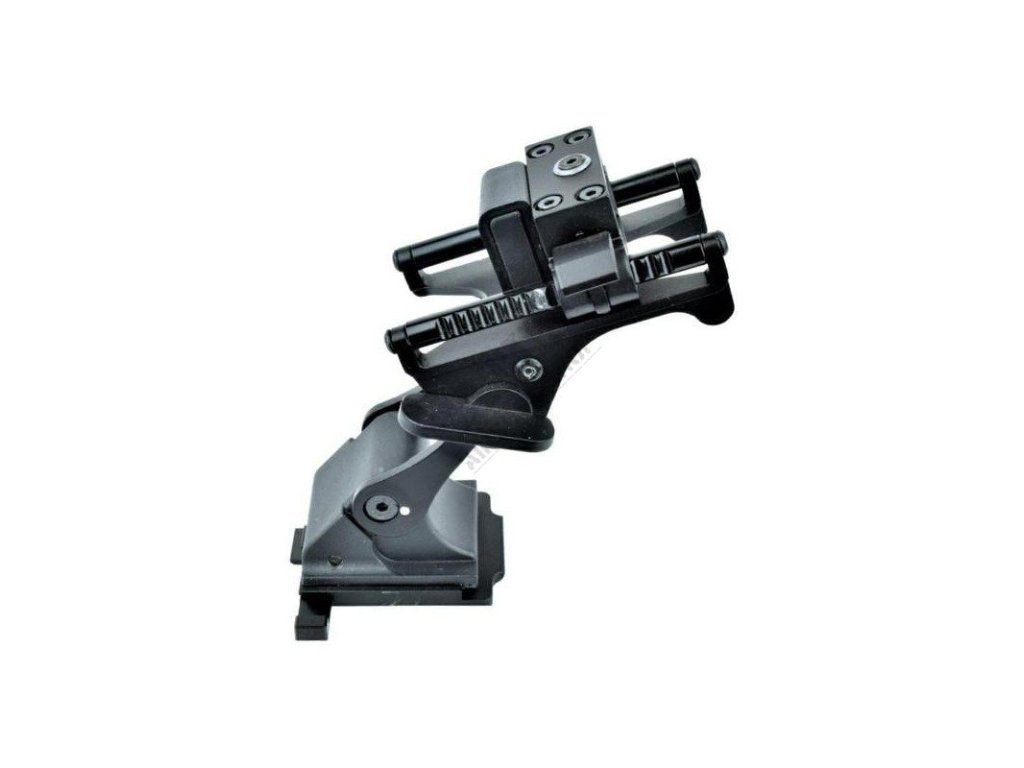 Noční držák na přilbu s nastavitelným sklonem a vzdáleností hledí v černé barvě.