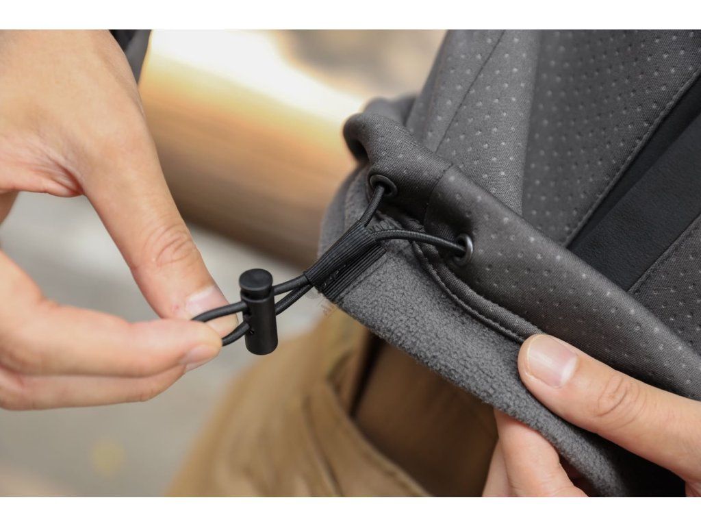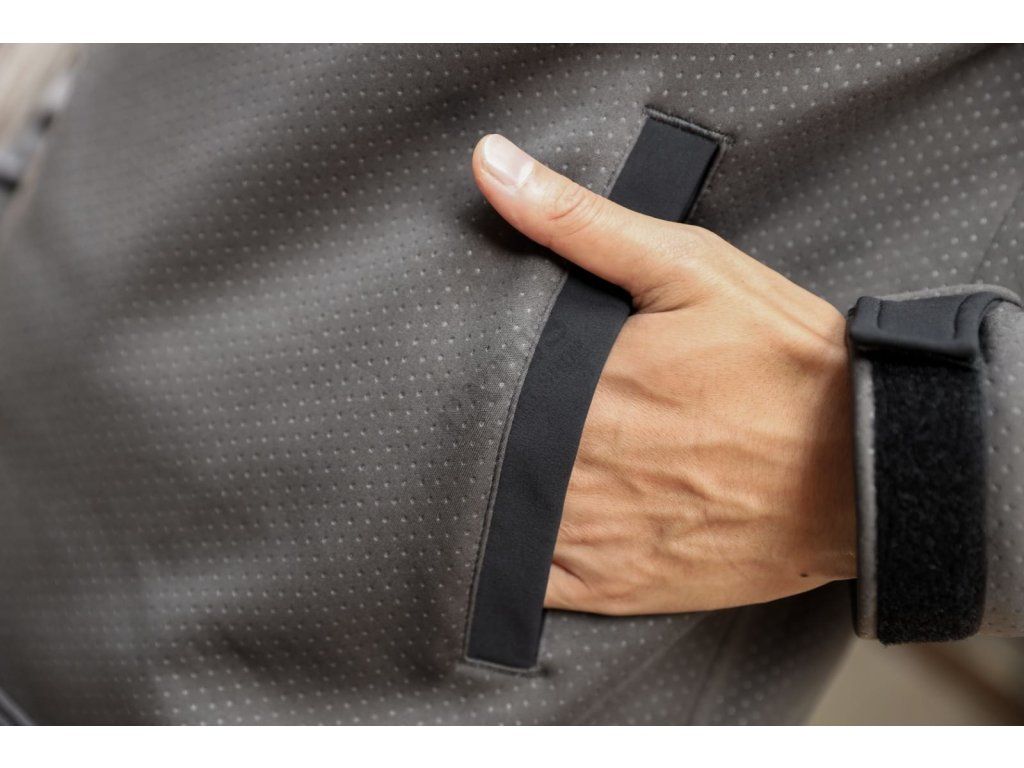 Softshellová bunda Rhinoceros od výrobce oblečení EmersonGear® z nejvyšší řady BlueLabel, která se vyznačuje kvalitou materiálu. Bunda je vyrobena z polyesteru a nylonu. Na ramenou je látka vyrobena ze Spandexu (14 %) a směsi nylonu (86 %), což zvyšuje odolnost této části proti opotřebení například od popruhů batohu nebo vesty. Je vhodná zejména jako ochrana před nepřízní počasí, pro různé outdoorové aktivity, sportovní aktivity za chladných večerů i pro airsoft. Otvory umístěné na povrchu bundy jsou ultrazvukově lisované a zvyšují prodyšnost tkaniny pro vlhkost. Vnitřní měkká fleecová vrstva zvyšuje tepelný komfort a je také šetrná k pokožce. Manžety rukávů lze stáhnout pomocí suchého zipu a ve spodní části bundy se nachází stahovací šňůrka, která pomáháStahovací šňůrka ve spodní části bundy slouží k úpravě obvodu bundy, což opět zajišťuje větší tepelný komfort a snižuje tak únik tepla. Na bundě jsou 2 hlavní přední kapsy a jedna menší kapsa na hrudi. Na levém rameni je panel na suchý zip se čtyřmi otvory MOLLE, který umožňuje připevnit např. nášivku a díky otvorům také např. brýle, propisky a další předměty.