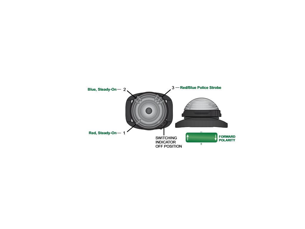 Model Guardian Trident Police Strobe s transparentním sklem najdete pod kódem 4600 (konstantní světlo červené, modré a výstražné blikání červená/modrá)