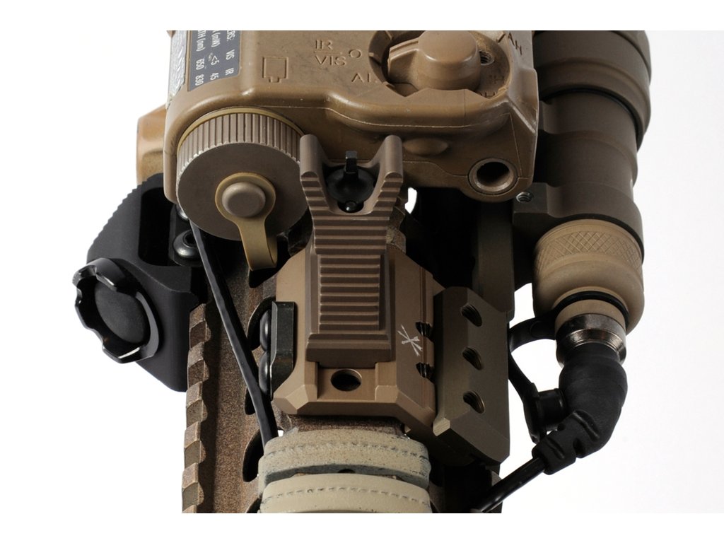 Hot Button je revoluční dálkový spínač pro ovládání puškových svítilen uchycených na dlouhých zbraních. Byl vyvinut pro potřeby šetření prostoru na liště zbraně, zlepšení ergonomie aktivace svítilny a mechanicky se uchytí na předpažbí zbraně. Hot Button úspěšně předefinoval způsob, jakým komunikujete se svou svítilnou. První významnou inovací je úhel tlačítka. Tradiční dálkové spínače mají plochou podložku, která nutí uživatele namáhat palce v nepřirozeném úhlu, aby mohli vyvíjet konzistentní tlak pro aktivaci momentální funkce. Hot Button nabízí aktivační tlačítko pod úhlem 45 stupňů pro mnohem pohodlnější stisk. To je obzvláště důležité při aktivaci tlačítka pod tlakem. Zvýšené cimbuří chrání tlačítko před náhodnou aktivací a zároveň poskytuje uživateli hmatový bod pro palec. Vzhledem k tomu, že je Hot Button úhlový, celková plocha je mnohem menší než u továrních tlakových spínačů. To výrazně zvyšuje možnosti uspořádání příslušenství na menších SMG a PDW. Kdyby to nestačilo, navrhli jsme dvě samostatné verze Hot Button, které se přímo připevní buď k MIL-STD M1913 Picatinny nebo k rozhraní lišty M-LOK. Obě lišty jsou schváleny a standardizovány americkým ministerstvem obrany pro použití na zbraních. Hot Button se k těmto lištám připevňuje pomocí vlastní montáže, což eliminuje potřebu suchých zipů, pásek nebo svorek. Tento bezpečný způsob připevnění zajišťuje, že vaše spínače zůstanou na zbrani (na místě, kde jste je umístili) bez ohledu na nároky bojového pole. Hot Button je dostupný pro standardní koncovky Surefire.