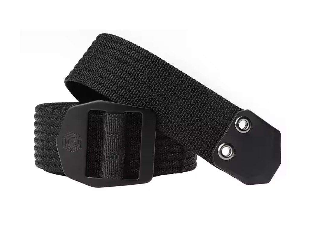 Kalhotový pásek Blue Label "Rock Python" od výrobce Emerson. Vysoce pevný nylonový materiál: "Rock Python" má dobré vlastnosti, pokud jde o pružnost a odolnost proti opotřebení za sucha i za mokra, málo se sráží, snadno se neohýbá a je také snadno omyvatelný a rychle schne. Hustota přezky z hliníkové slitiny je 2,7 g/cm3, což je pouze 1/3 hustoty oceli, takže je velmi lehká. Pevnost spony ze slitiny hliníku v tahu je 100-280 MPa a pevnost v ohybu 60-220 MPa, což je více než pevnost běžné oceli. Hladký povrch, lesklá povrchová úprava, která při dlouhodobém používání snadno nevybledne a nestárne. S koncovou sponou pro upevnění konce opasku, což usnadňuje použití mezi poutky opasku.