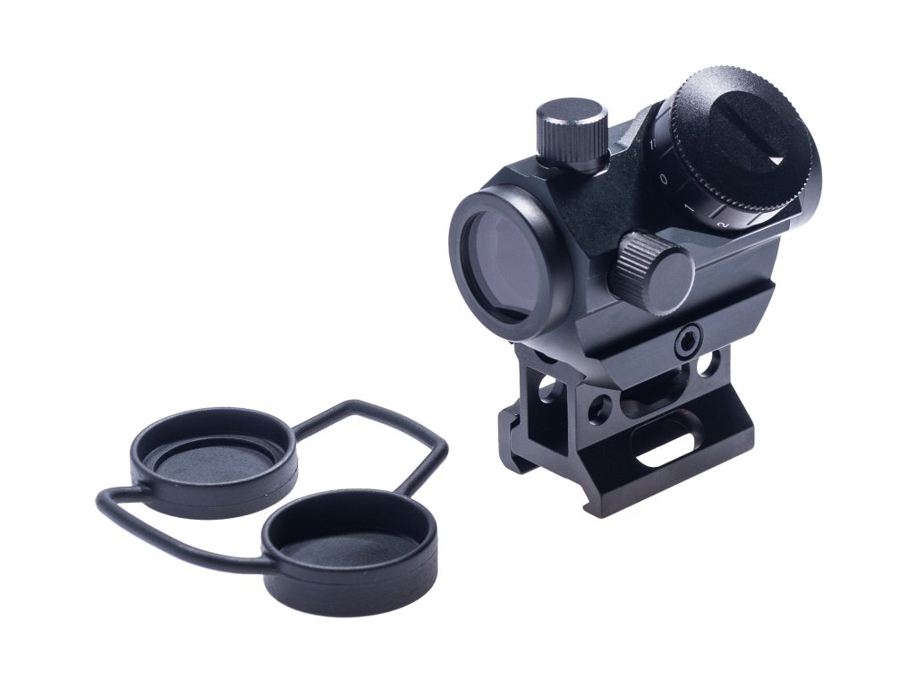 Balení obsahuje kolimátor, vyvýšenou montáž na 22mm lištu RIS, gumové krytky.
