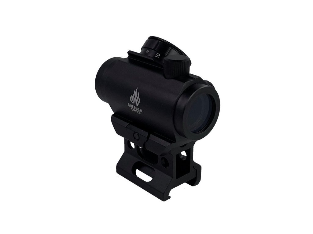 Kolimátor Red Dot Sight T1 od společnosti Guerilla Optics. Horizontální a vertikální nastavení záměrného bodu s několika úrovněmi intenzity. Výška červeného bodu při namontovaném kolimátoru je přibližně 6 cm.