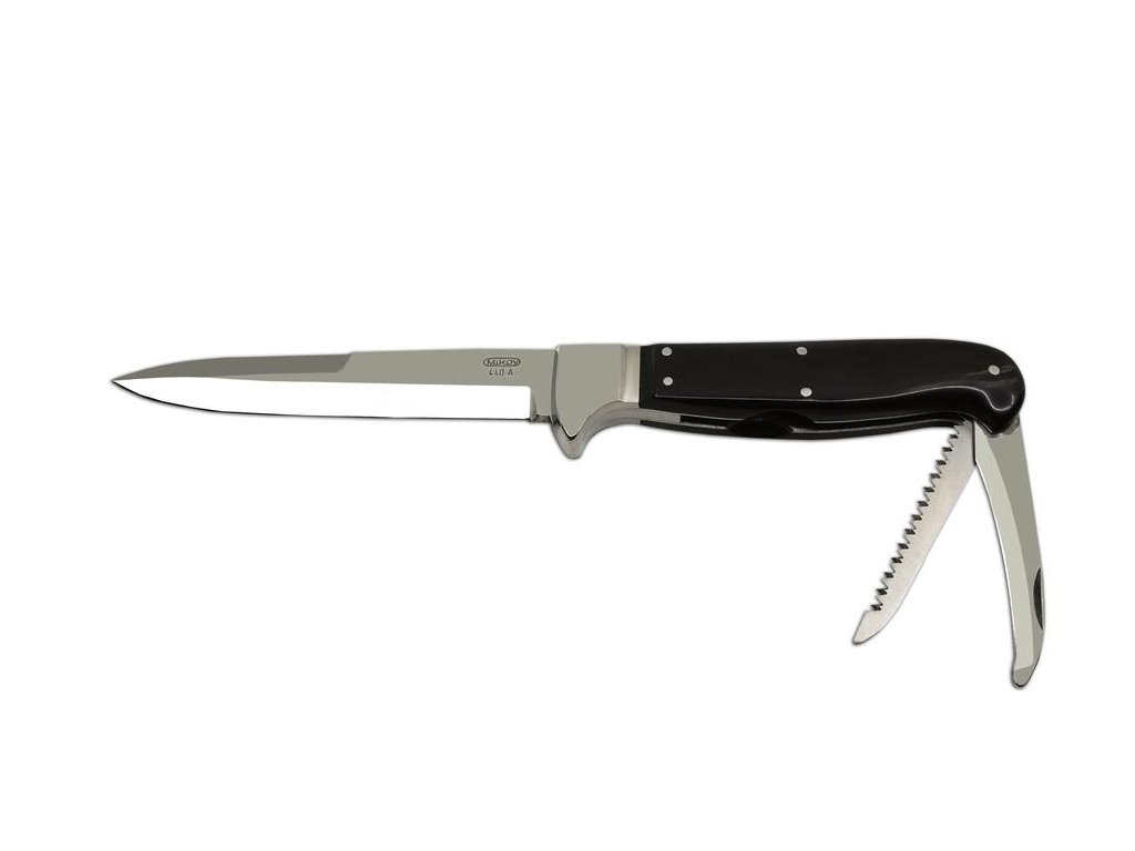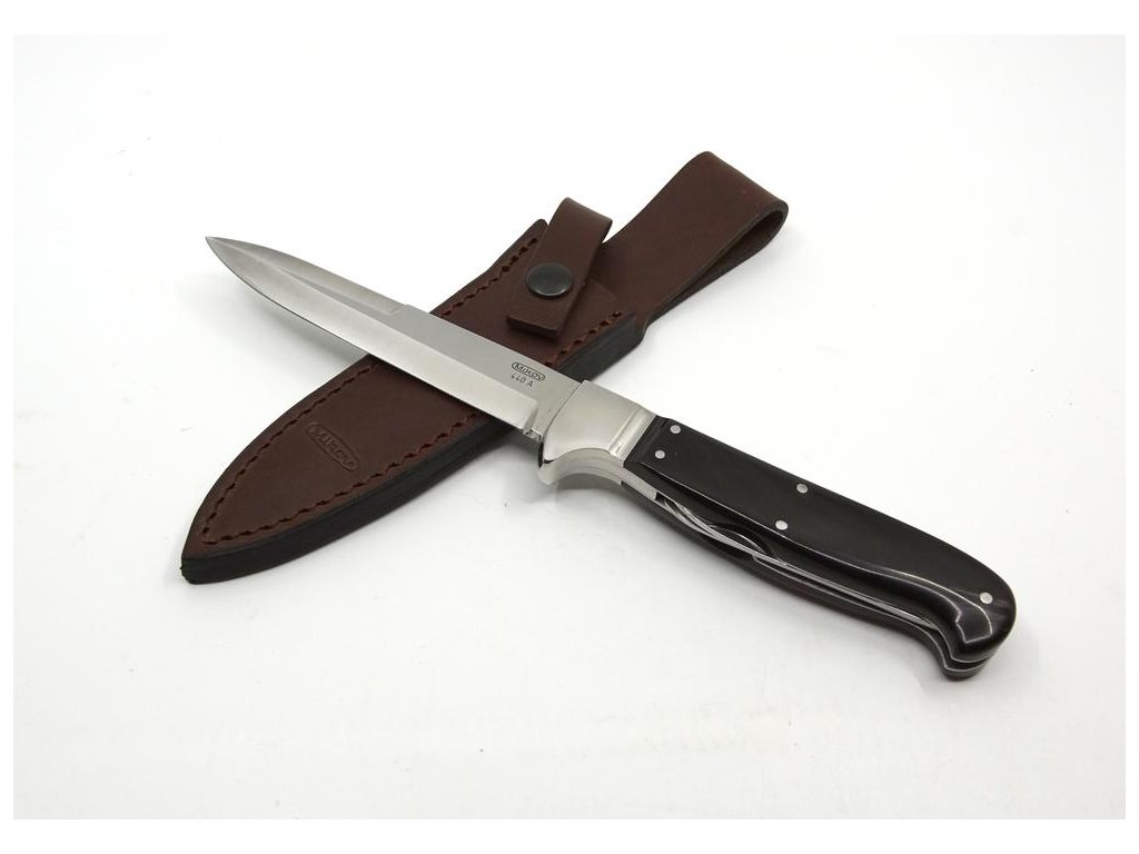 | Popis EN: | Dagger 370-XR-3 DEER <br> Hunting dagger with a fixed blade called JELEN is a popular knife for hunters who like a quality knife they can rely on <br> <br> Blade is made of high quality stainless steel type 440 A with a hardness of 54-57 HRc <br> The dagger handle, which conceals the saw and the down blade is made of buffalo horn. <br> The dagger comes with hand made leather sheath. This knife is suitable for hunting, camping equipment, bone cutting or skin rearing.<br> Hunting knife JELEN is one of the original knives of Mikov. |