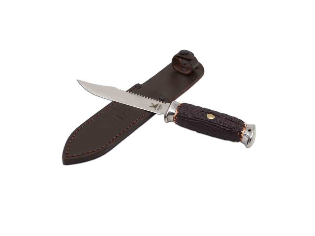 | Popis EN: | 376-NH-1 / Z HUNTING DAGGER <br> Hunting dagger called VENADO belongs to the category of cheaper knives, which have been produced for many years.<br> Blade of VENADO is made of quality stainless steel type 420 with a hardness of 52-55HRc. This blade also includes a saw on its upper edge, which is used for cutting bones or woody species.<br> The handle of this hunting dagger is a very successful imitation of a deer antler. <br> The dagger comes with a leather case and it is an original knife from company Mikov |