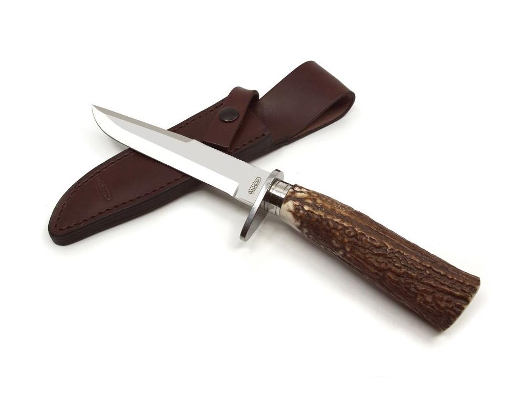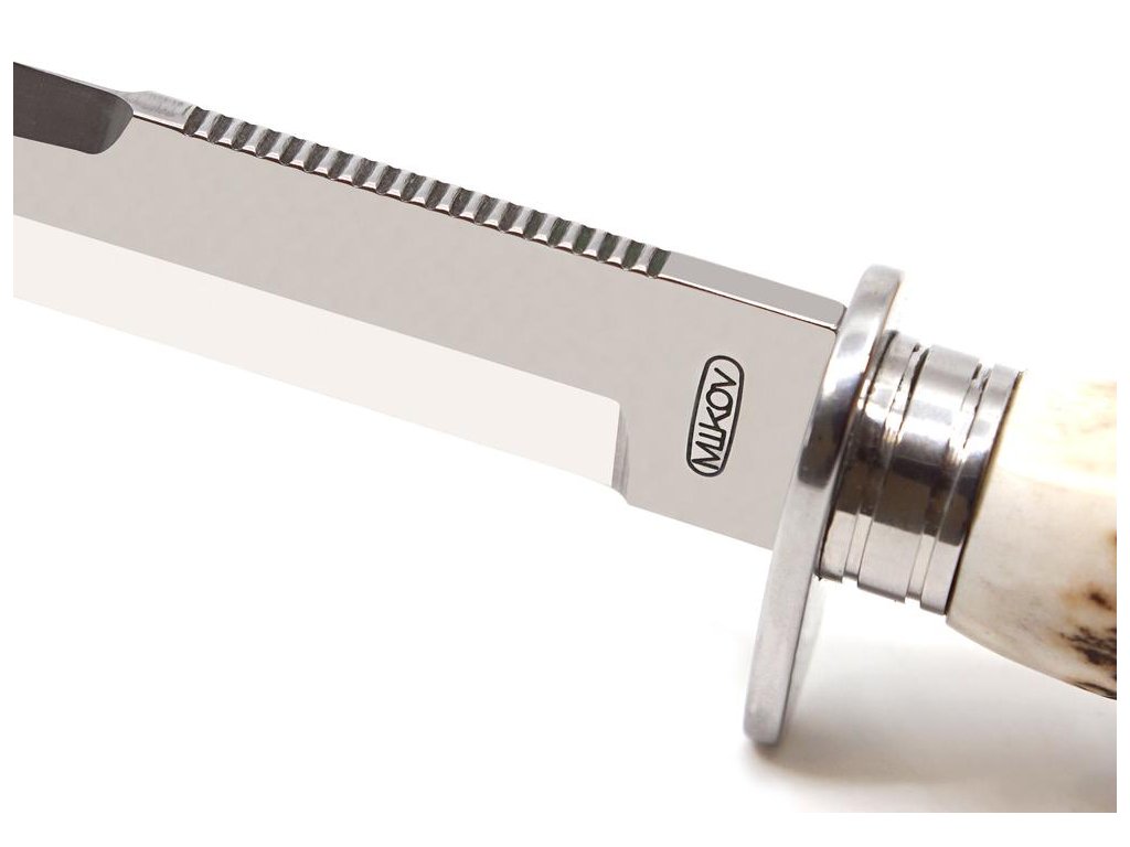 | Popis EN: | Dagger 390-NP-1 HUNTING HORN <br> Hunting dagger called LONGORN is a fixed blade hunting knife that is well known and tested as i tis also used on military UTON knives. <br> The dagger is made of high quality stainless steel type 420 with a hardness of 53-56 HRc and the handle is made of genuine deer antler.<br> To prevent slipping and easy cutting, this dagger is provided with a forging and the handle has a conical shape. <br> The dagger comes with a leather sheath. <br> Hunting knife LONGORN is used in forestry in nature and for hunting <br> <br> This dagger is one of the original knives from Mikov. |