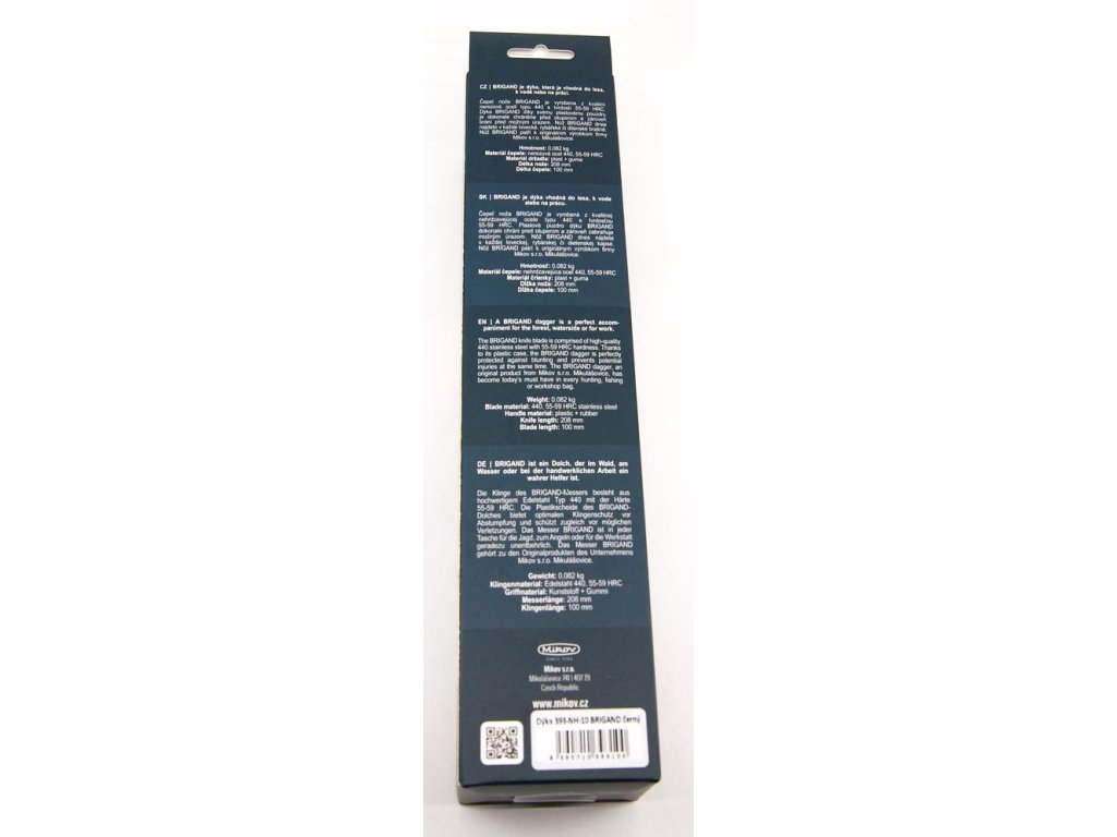 | Popis EN: | Dagger 393-NH-10 BRIGAND orange <br> BRIGAND is a dagger that is suitable for outdoor activities. <br> The blade of the BRIGAND knife is made of high quality stainless steel type 440 A with a hardness of 55-59 HRc <br> BRIGAND dagger thanks to its plastic case is perfectly protected against dulling and at the same time prevents user from possible injuries. Number of functions: 1 <br> Today you will find the BRIGAND knife in every hunting, fishing or tool bag. The BRIGAND knife belongs to the original products of the Mikov s.r.o. Mikulášovice. |