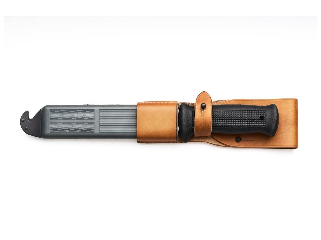Ve vzdálenosti 35 mm od špičky je vystřižen otvor pro nasazení čepu pochvy. Ta slouží podobně jako u bodáků pro AK 74 ke stříhání drátů a drátěného pletiva, to znamená k překonávání překážek z těchto materiálů.