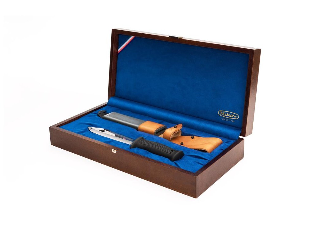 | Popis CZ: | Jedná se o limitovanou číslovanou edici 500 kusů repliky prototypu populárního UTONu. Číslovka 74 chce ukázat právě na to, že se jedná o předchůdce známého UTONu, tedy správně vojenskou zkratkou UN vz. 75.<br><br>Komunita sběratelů a fanoušků nožů se dlouhodobě zajímala o vývojový prototyp populárního UTONu. Proto když se přemýšlelo nad tím, který nůž v limitované sérii 500 kusů vyrobit k připomenutí 230. výročí nožířství v Mikulášovicích, bylo rozhodnuto právě pro něj. Mikov mu dal obchodní jméno UTON vz. 74. <br><br>Vyrobit ho nebylo vůbec snadné. Na základě několika málo zachovaných prototypů a torza výkresů bylo třeba připravit technickou dokumentaci, navrhnout výrobní přípravky, vypracovat technologické postupy, nakreslit a otestovat formy pro plastová pouzdra a rukojeti. Složitá byla také náhrada některých materiálů, které se v průběhu uplynulých desetiletích přestaly vyrábět.<br><br>Čepel nože je vyrobena z oceli 420 o tvrdosti 54-56 HRc tak, aby vydržela náročné podmínky a byla odolná vůči opotřebení. Má délku 134,5 mm a je dvoubřitá, kapkovitého, téměr symetrického tvaru se středovým hrotem. Čepel je ostřená pouze ma jedné spodní hraně. Na horní jednostraně broušené hraně je vypracováno zoubkování pod sklonem výbrusu a to v délce dvou třetin délky čepele. To mělo sloužit pro napilování silných drátů před stříháním.<br>Ve vzdálenosti 35 mm od špičky je vystřižen otvor pro nasazení čepu pochvy. Ta slouží podobně jako u bodáků pro AK 74 ke stříhání drátů a drátěného pletiva, to znamená k překonávání překážek z těchto materiálů.<br>Čepel má šířku 29 mm. Doplněn je pak pryžovou rukojetí pro pohodlné a bezpečné držení i ve vlhkém nebo kluzkém prostředí. Jak jsme uvedli výše, stejná rukojeť byla později použita na klasickém UTONu.<br>Na zadní straně pouzdra jsou dvě plastová poutka: horní pro uchycení koženého řemene a spodní pro uchycení pochvy na stehno. Na konci pouzdra je přinýtovaná ocelová součástka - střihadlo podobných tvarů, jaké známe z provedení bodáku AK 74. Po zavěšení pouzdra na opasku je na koženém řemeni poutko široké cca 63 mm (takže vojenský opasek šířky 40 mm se jím snadno provleče). Poutko je také rozepínatelné.<br><br>Čepel nože je opatřena pořadovým číslem. Z druhé strany čepele je označení vz. 74 a čepel je tradičně ražena logem firmy Mikov.<br><br>Parametry nože:<br>celková délka: 245 mm<br>délka čepele: 134,5 mm<br>šířka čepele: 29 mm<br>tloušťka čepele: 3,7 mm<br>hmotnost nože: 346 g<br>hmotnost nože včetně pouzdra: 1 370 g<br><br>UTON je dodáván bez příslušenství. Pilku, pilník a šňůru je možné dokoupit samostatně.<br><br>Více podrobností o vzniku UTONu vz. 74 <a href="https://www.mikov.cz/static/_dokumenty/1/8/2/8/7/MIKOV_UTON_74_18287.pdf">ZDE</a><br><br> |