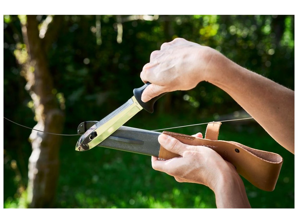 Čepel má šířku 29 mm. Doplněn je pak pryžovou rukojetí pro pohodlné a bezpečné držení i ve vlhkém nebo kluzkém prostředí.