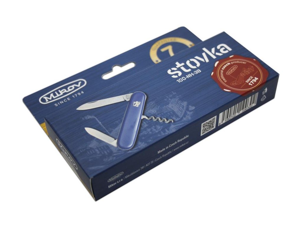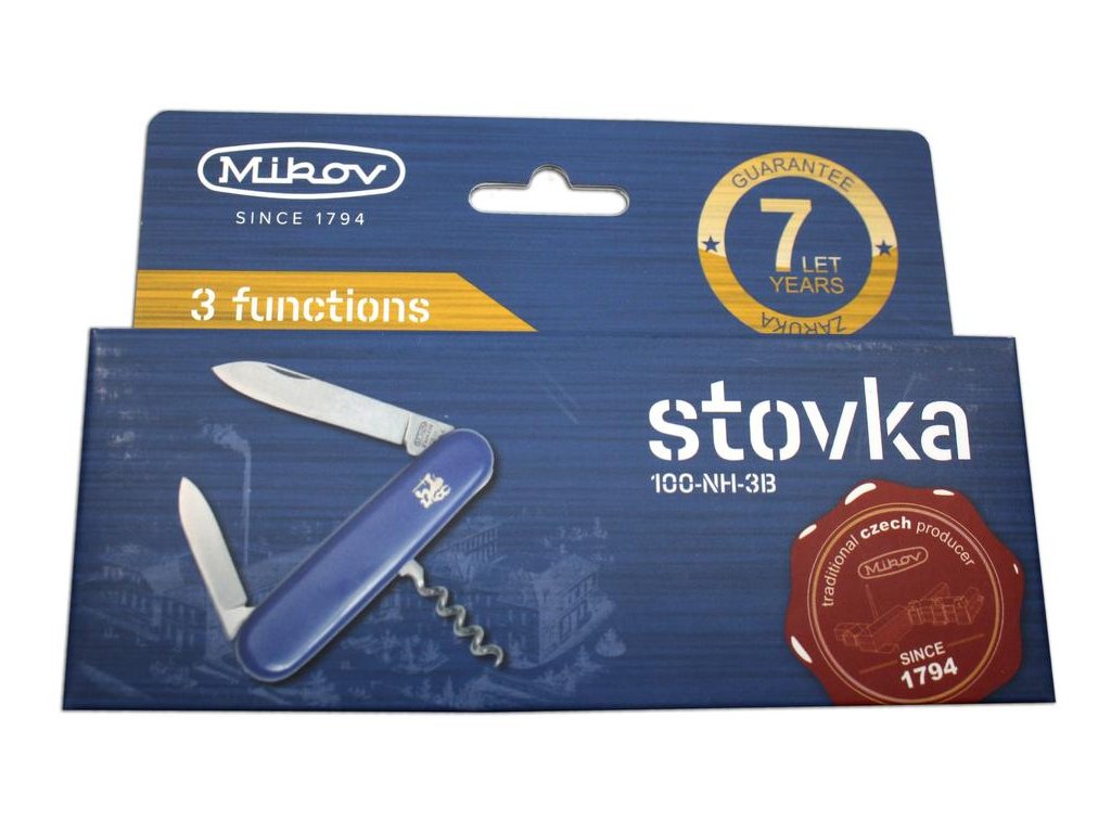 | Popis EN: | Pocket Folding Knife 100-NH-3B <br> <br> STOVKA is a traditional pocket folding knife. One of the many advantages of STOVKA is its size, it fits in any pocket and is therefore the ideal companion for any occasion. Examples include camping, food slicing, outdoor use or garden work. Blade is made of high quality 420 stainless steel, elegant grip is made of durable ABS material, which fits in every hand. STOVKA is a quality product of the company Mikov, which is located in the heart of Bohemian Switzerland in the town of Mikulášovice.<br> <br> Number of functions: 3 <br> <br> Equipment: <br> blade, small blade, corkscrew |