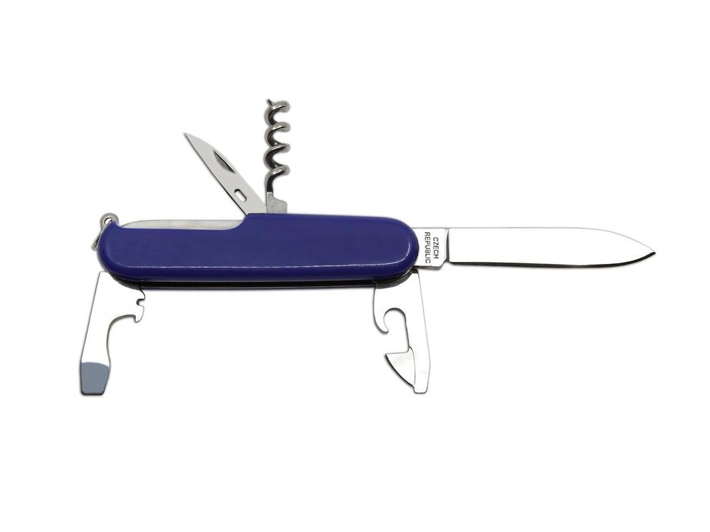 Vybavení: čepel, otvírač na láhve/šroubovák/drážka na odizolování vodičů, otvírač na konzervy, vývrtka, bodec