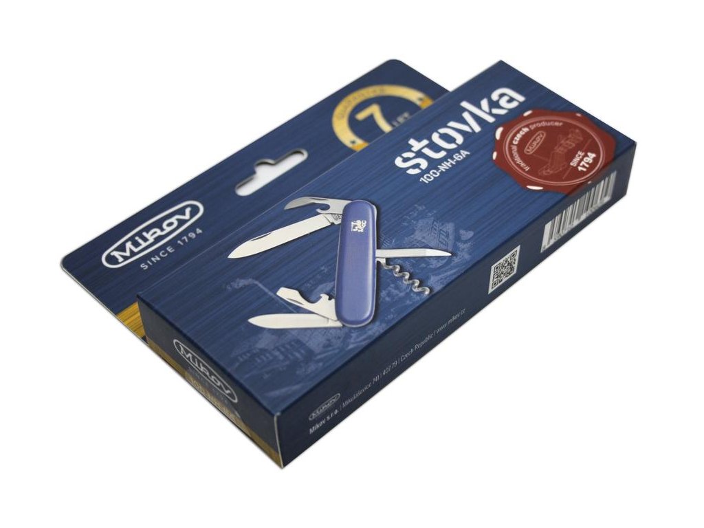 | Popis EN: | Pocket Folding Knife 100-NH-6A <br> <br> STOVKA is a traditional pocket folding knife. One of the many advantages of STOVKA is its size, it fits in any pocket and is therefore the ideal companion for any occasion. Examples include camping, food slicing, outdoor use or garden work. Blade is made of high quality 420 stainless steel, elegant grip is made of durable ABS material, which fits in every hand. STOVKA is a quality product of the company Mikov, which is located in the heart of Bohemian Switzerland in the town of Mikulášovice.<br> <br> Number of functions: 6 <br> <br> Equipment: <br> blade, small blade, bottle opener / screwdriver / wire groove, can opener, corkscrew, spike |