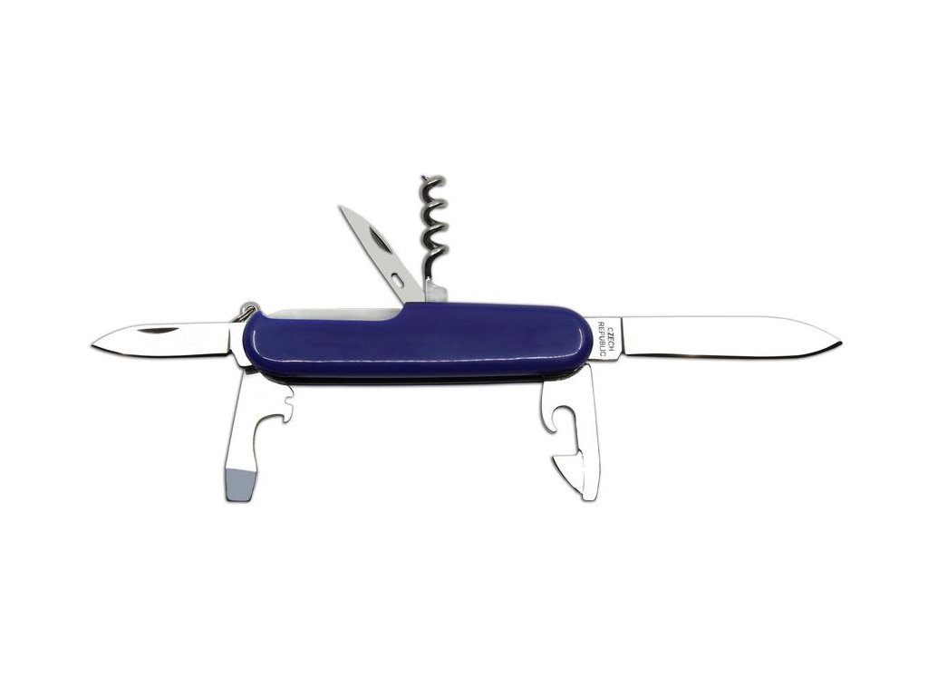 Vybavení: čepel, malá čepel, otvírač na láhve/šroubovák/, drážka na odizolování vodičů, otvírač na konzervy, vývrtka, bodec