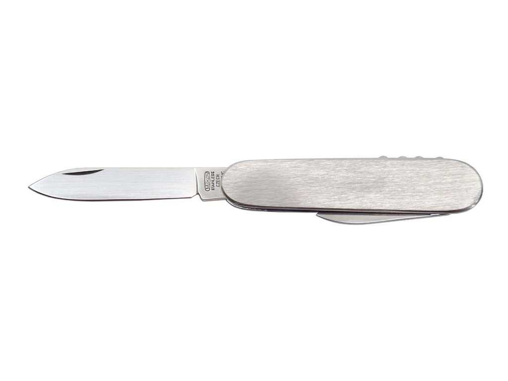 | Popis EN: | Pocket Folding Knife 100-NN-3B <br> <br> STOVKA is a traditional pocket folding knife. One of the many advantages of STOVKA is its size, it fits in any pocket and is therefore the ideal companion for any occasion. Examples include camping, food slicing, outdoor use or garden work. Blade is made of high quality 420 stainless steel, elegant grip with brushed surface is made of stainless steel, which adds an exclusive and elegant appearance. STOVKA is a quality product of the company Mikov, which is located in the heart of Bohemian Switzerland in the town of Mikulášovice.<br> <br> Number of functions: 3 <br> <br> Equipment: <br> blade, small blade, corkscrew |