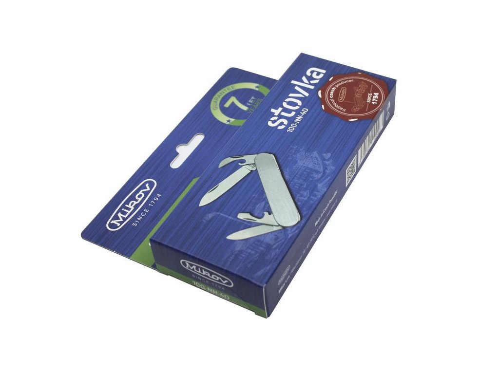 | Popis EN: | Pocket Folding Knife 100-NN-4D <br> <br>STOVKA is a traditional pocket folding knife. One of the many advantages of STOVKA is its size, it fits in any pocket and is therefore the ideal companion for any occasion. Examples include camping, food slicing, outdoor use or garden work. Blade is made of high quality 420 stainless steel, elegant grip with brushed surface is made of stainless steel, which adds an exclusive and elegant appearance. STOVKA is a quality product of the company Mikov, which is located in the heart of Bohemian Switzerland in the town of Mikulášovice.<br> <br> Number of functions: 4 <br> <br> Equipment: <br> blade, small blade, bottle opener / screwdriver / wire stripper, can opener. |