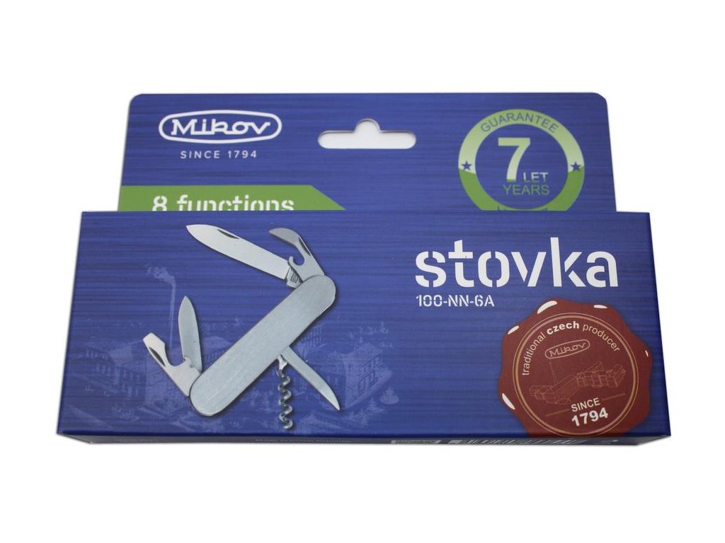 Stovka je tradiční kapesní zavírací nůž. Jednou z mnoha výhod Stovky je velikost, vejde se do každé kapsy a je proto ideálním společníkem pro každou příležitost. Příkladem využití může být táboření, krájení potravin, využití v přírodě nebo při práci na zahradě. Zavírací nůž Stovka je kvalitní výrobek nožířské firmy Mikov, která sídlí v srdci Českého Švýcarska ve městě Mikulášovice. Počet funkcí: 6