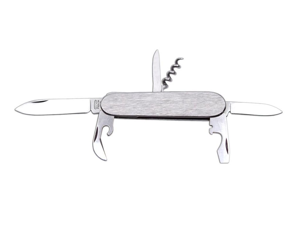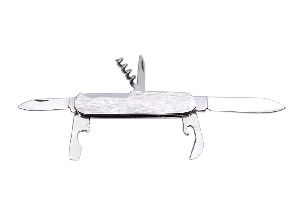 Vybavení: čepel, malá čepel, otvírač na láhve/šroubovák/drážka na odizolování vodičů, otvírač na konzervy, vývrtka, bodec