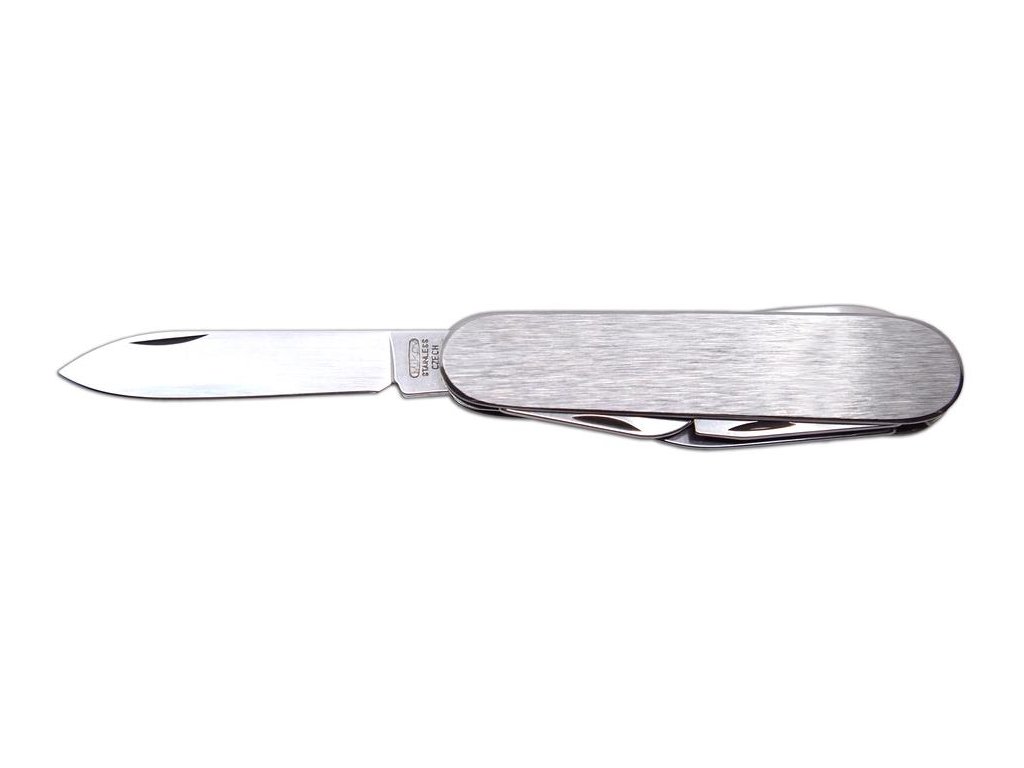 | Popis EN: | Pocket Folding Knife 100-NN-6A <br> <br>STOVKA is a traditional pocket folding knife. One of the many advantages of STOVKA is its size, it fits in any pocket and is therefore the ideal companion for any occasion. Examples include camping, food slicing, outdoor use or garden work. Blade is made of high quality 420 stainless steel, elegant grip with brushed surface is made of stainless steel, which adds an exclusive and elegant appearance. STOVKA is a quality product of the company Mikov, which is located in the heart of Bohemian Switzerland in the town of Mikulášovice.<br> <br> Number of functions: 6 <br> <br> Equipment: <br> blade, small blade, bottle opener / screwdriver / wire groove, can opener, corkscrew, spike. |