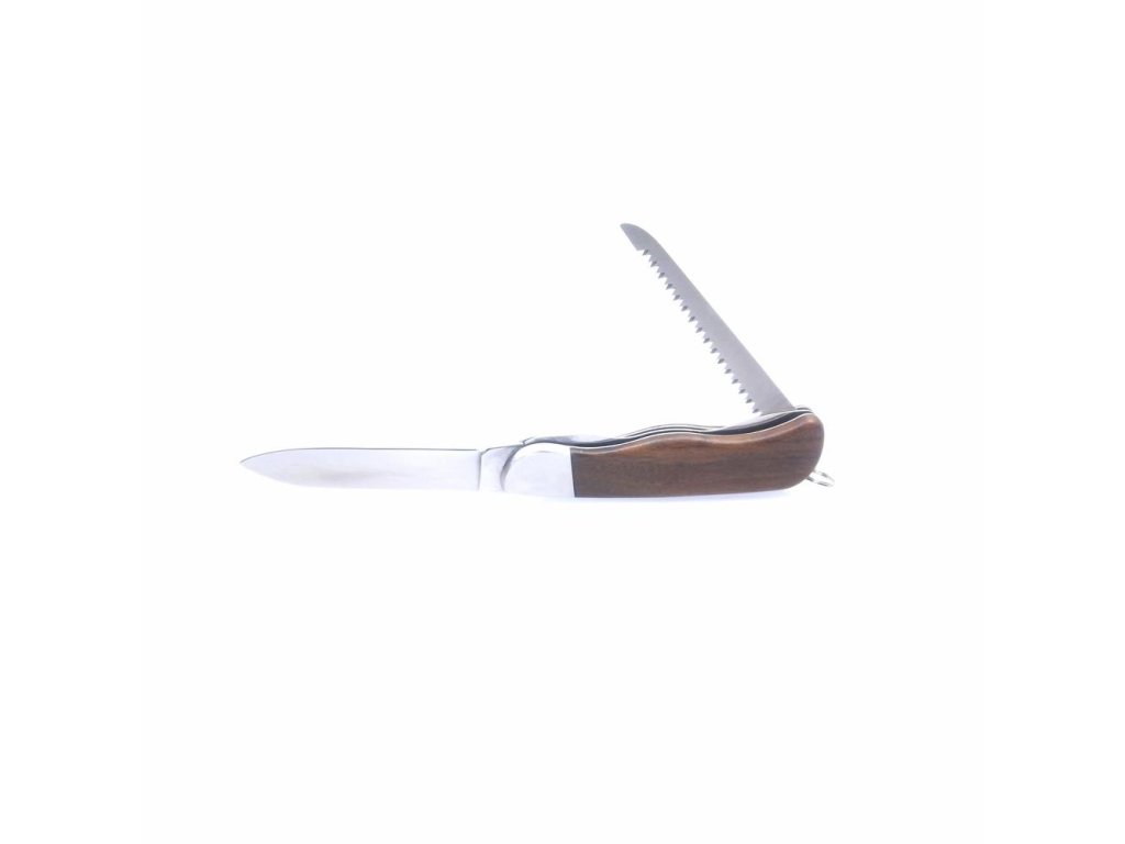 VYBAVENÍ: Čepel kapesního zavíracího nože HIKER je vyrobena z kvalitní nerezové oceli 420 o tvrdosti 53-55HRc. Tento kapesní zavírací nůž HIKER je vybaven kvalitní pilkou s dvěma řadami zubů, kováním a střenkou vyrobenou z kvalitního exotického dřeva Palisandr. Kapesní zavírací nůž HIKER je také vybaven kroužkem pro uchycení a je dodáván v koženém pouzdře s logem Mikov. Počet funkcí: 3