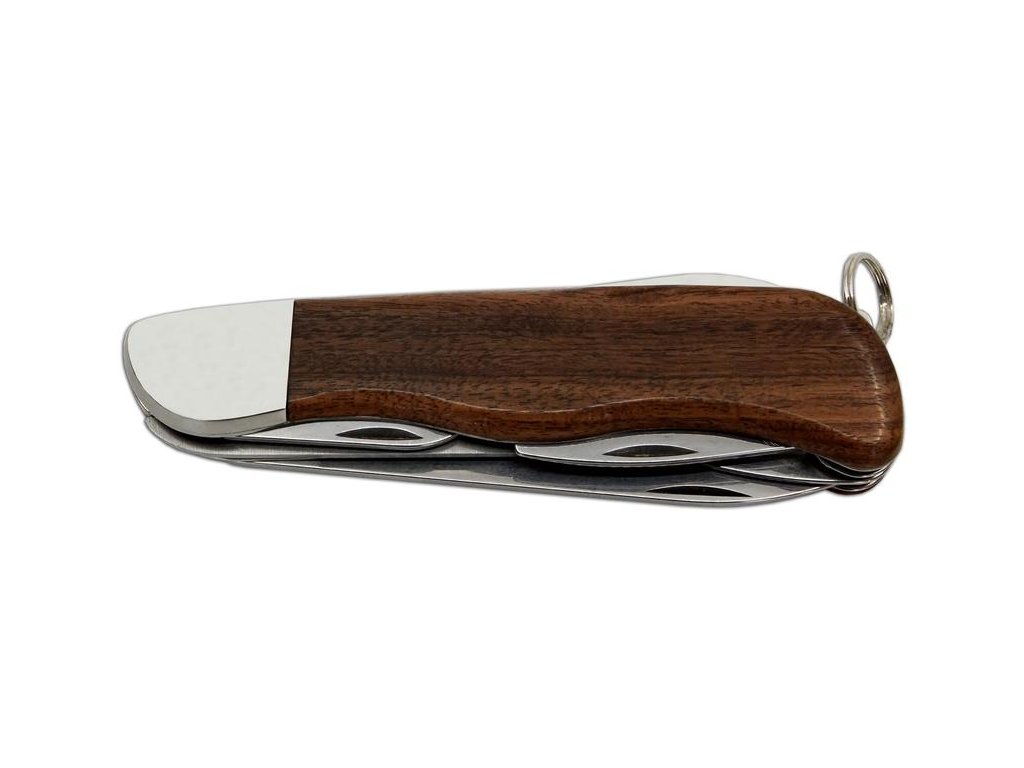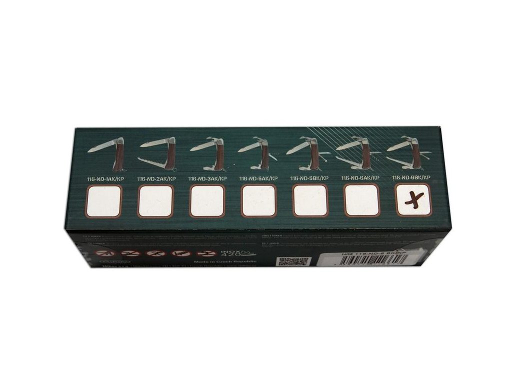 | Popis EN: | Outdoor pocket folding knife HIKER 116-ND-6 BK / KP <br> Outdoor pocket folding knife HIKER with blade lock and pilkyl inerlock is an elegant knife with proven design and shape for common use. <br> EQUIPMENT: <br> The blade of the HIKER pocket folding knife is made of high-quality stainless steel 420 with a hardness of 53-55HRc. This HIKER pocket folding knife is equipped with a high-quality saw with two rows of teeth, can opener, cross screwdriver, spike and bottle opener that has a groove for wire stripping or can also be used as a flat screwdriver. The HIKER pocket folding knife has fittings and a handle made of high-quality exotic rosewood. The HIKER pocket folding knife is also equipped with a ring for attachment and is delivered in a leather case with the Mikov logo. Number of functions: 7 <br> Knife HIKER is an original product of the company Mikov Mikulášovice, which is located in the Czech Switzerland. |