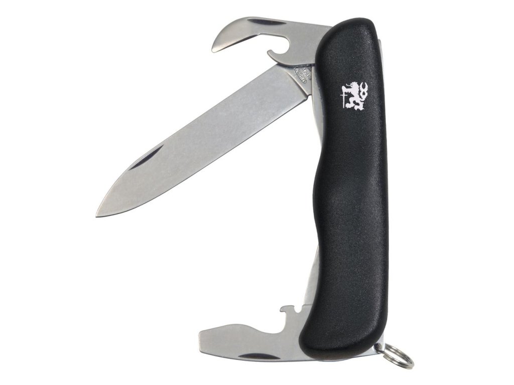 Vybavení: čepel, otvírač na lahve/šroubovák/drážka na odizolování vodičů, otvírač na konzervy, kroužek
