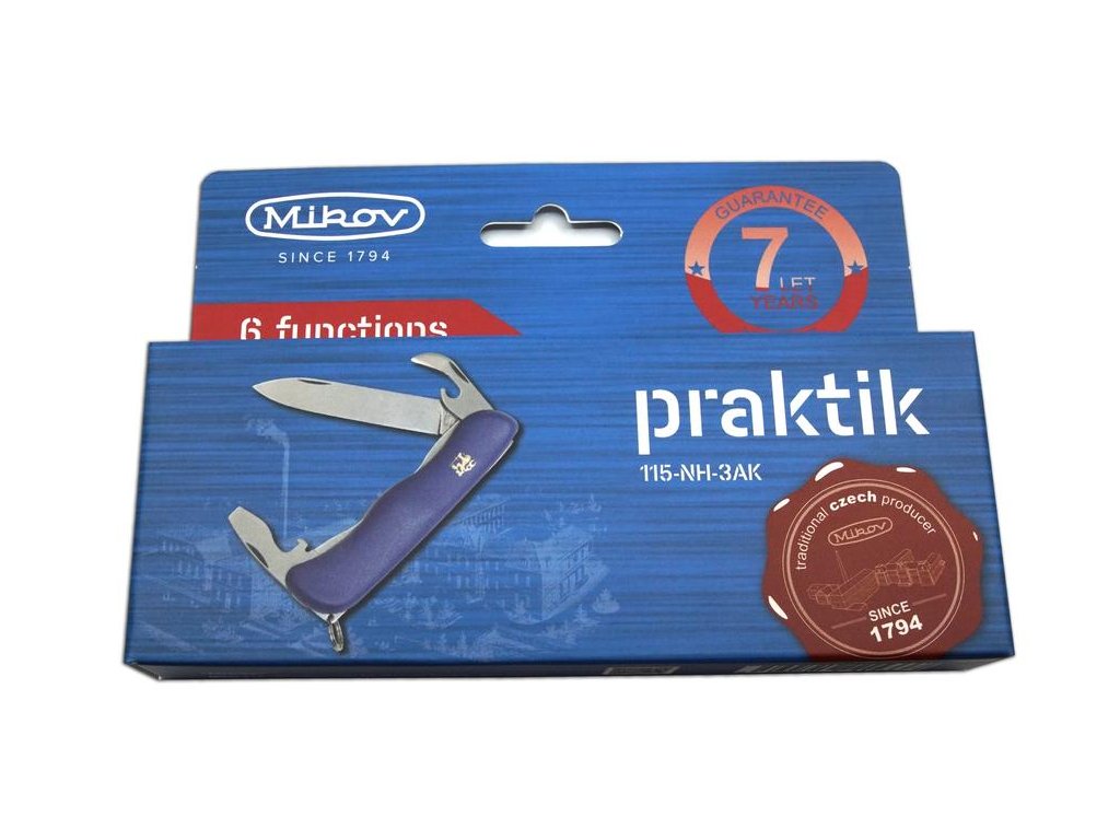Kapesní zavírací nůž Praktik je všestranný pomocník. Jeho čepel je vyrobena z kvalitní nerezové oceli 420 o tvrdosti 53-55 HRc. Ergonomický tvar střenky zajišťuje velmi pohodlné držení. Nůž Praktik je vybaven pojistkou (linerlock), která zabraňuje nechtěnému uzavření čepele. Příkladem využití nože Praktik může být krájení potravin, využití v přírodě nebo při práci na zahradě. Díky kroužku je možné si nůž Praktik zavěsit k opasku a zabránit tak ztrátě. Nůž Praktik je výrobkem nožířské firmy Mikov, která sídlí v srdci Českého Švýcarska ve městě Mikulášovice.