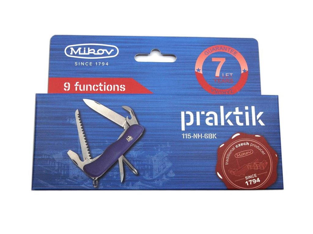 Kapesní zavírací nůž Praktik je všestranný pomocník. Jeho čepel je vyrobena z kvalitní nerezové oceli 420 o tvrdosti 53-55 HRc. Ergonomický tvar střenky zajišťuje velmi pohodlné držení. Nůž Praktik je vybaven pojistkou (linerlock), která zabraňuje nechtěnému uzavření čepele. Příkladem využití nože Praktik může být krájení potravin, využití v přírodě nebo při práci na zahradě. Díky kroužku je možné si nůž Praktik zavěsit k opasku a zabránit tak ztrátě. Nůž Praktik je výrobkem nožířské firmy Mikov, která sídlí v srdci Českého Švýcarska ve městě Mikulášovice.