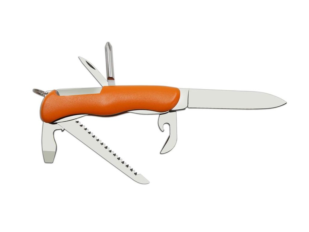 Vybavení: čepel, otvírač na láhve/šroubovák/drážka na odizolování vodičů, otvírač na konzervy, pilka, křížový šroubovák, bodec, kroužek