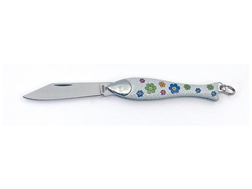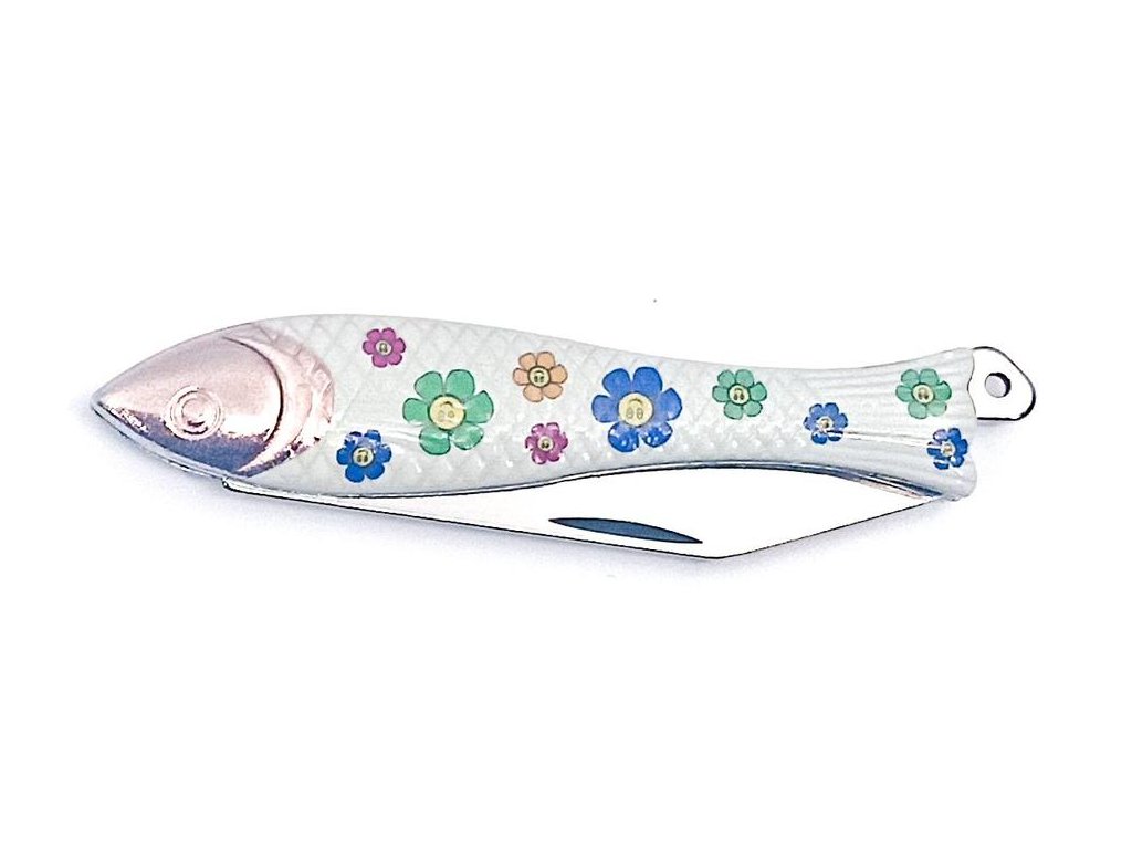Celoplošně potištěná Rybička s tématem květů patří mezi obrázkové nože, které vyrábíme jen v kusově omezených sériích. Je určena jako zajímavý dárek ke dni svatého Valentýna, ale svoje užití si najde i při dalších podobných příležitostech. Tato Rybička s ozdobným motivem patří mezi klasické kapesní zavírací nože, v tomto případě v omezené sérii při příležitosti svátku sv. Valentýna Střenky nože Rybička jsou vyrobeny ze zinkové slitiny a čepel nože je z kvalitní nerezové oceli typ 420 s tvrdostí 52-55 HRc. Tento originální výrobek patří do kolekce zdobených nožů firmy Mikov s.r.o. Mikulášovice. Baleno v papírové krabičce s euro závěsem.