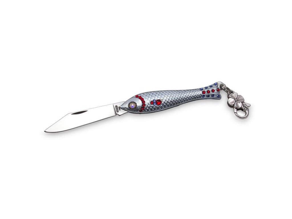 Tato Rybička patří mezi kapesní zavírací nože, které jsou ručně zdobené kamínky Preciosa a proto je zařazena do kategorie dekorativních předmětů.
