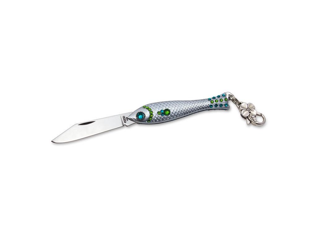 | Popis EN: | Knife 130-NZn-1 / KZ MELIA <br> This fish knife belongs to pocket folding knives, which are decorated with crystal stones. <br> The fish is inserted into a tin gift box PDK1 and is equipped with a decorative carabiner.<br> Each knife is hand- decorated and becomes a true original with a beautiful memory of our childhood.<br> Knife Handles are made of zinc alloy and the blade is made of high quality stainless steel type 420 with a hardness of 52-55 HRc.<br> This original product belongs to the collection of hand-painted knives from Mikov s.r.o. Mikulášovice. |