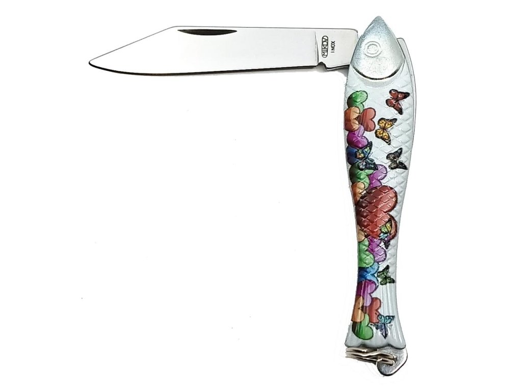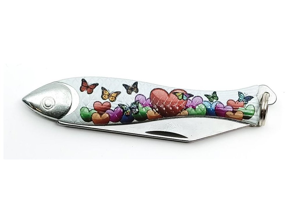 Celoplošně potištěná Rybička s tématem lásky patří mezi obrázkové nože, které vyrábíme jen v kusově omezených sériích. Je určena jako zajímavý dárek ke dni svatého Valentýna, ale svoje užití si najde i při dalších podobných příležitostech. Tato Rybička s ozdobným motivem patří mezi klasické kapesní zavírací nože, v tomto případě v omezené sérii při příležitosti svátku sv. Valentýna. Střenky nože Rybička jsou vyrobeny ze zinkové slitiny a čepel nože je z kvalitní nerezové oceli typ 420 s tvrdostí 52-55 HRc. Tento originální výrobek patří do kolekce zdobených nožů firmy Mikov s.r.o. Mikulášovice. Baleno v papírové krabičce s euro závěsem.