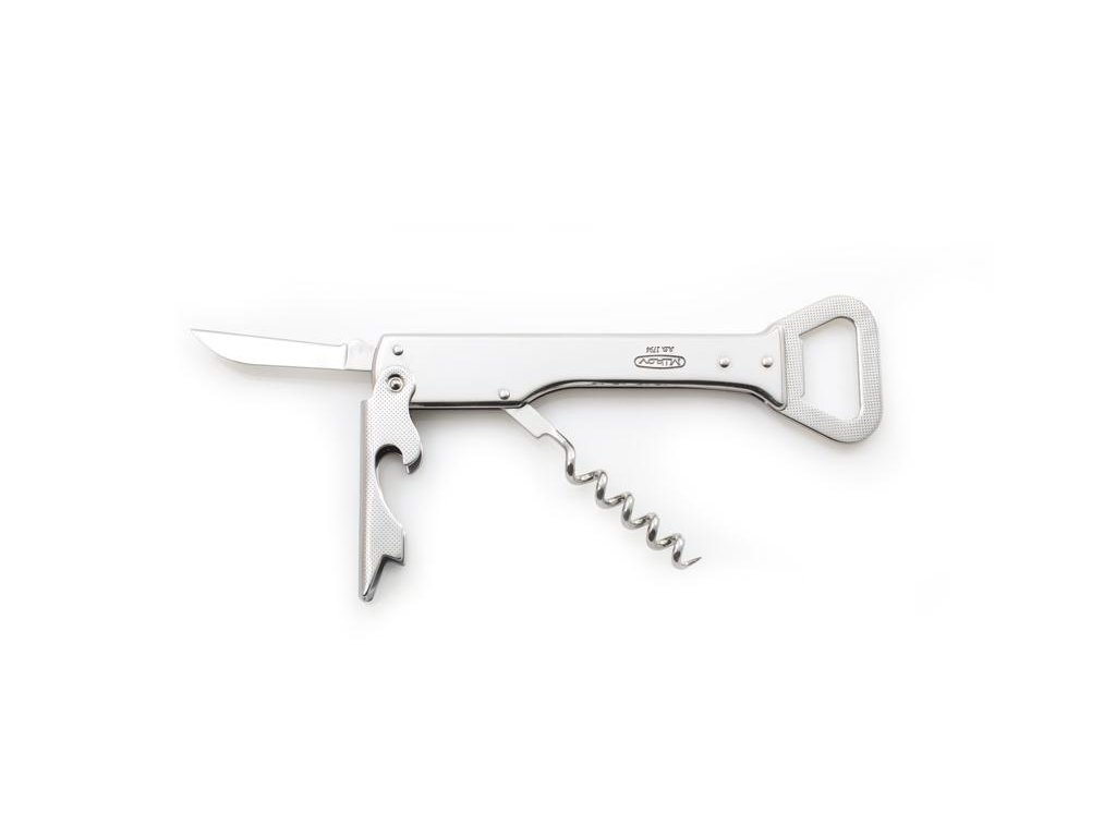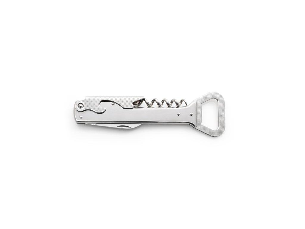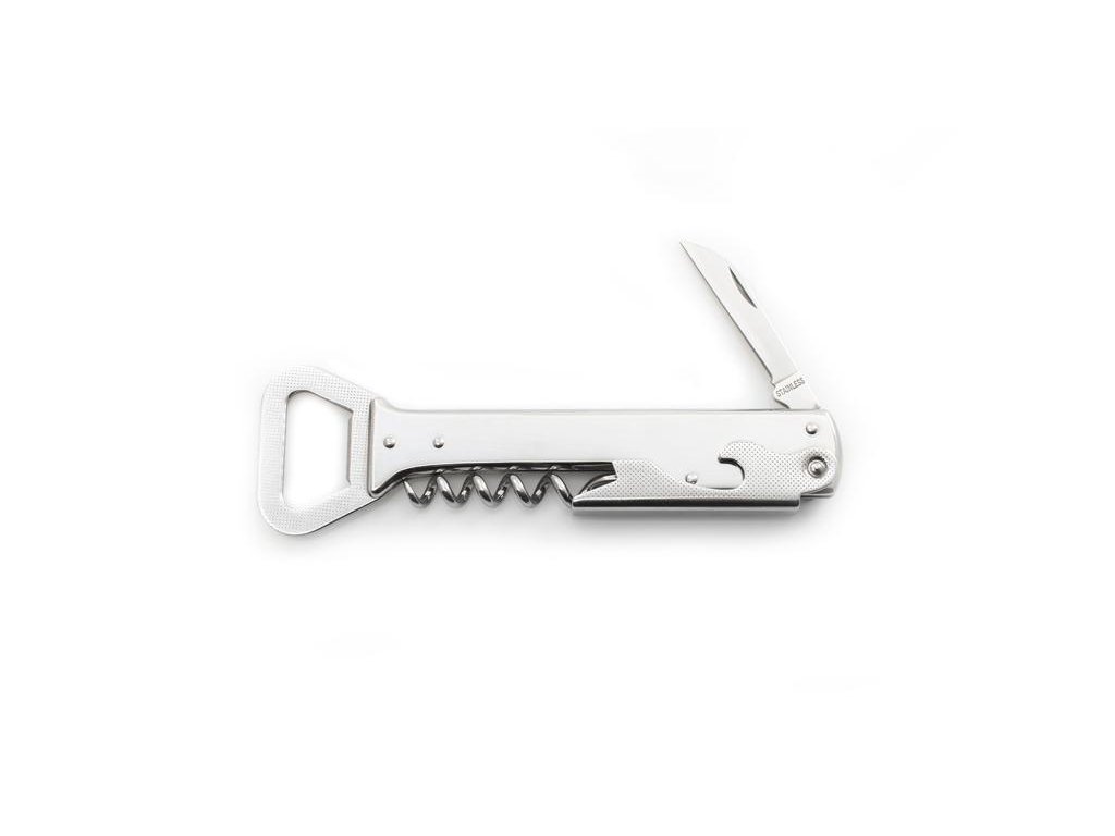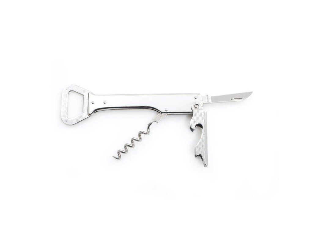 Originální číšnický zavírací nůž Handy je v celokovovém provedení z velmi kvalitní nerezové oceli typu 420 o tvrdosti 53-55 HRc. Disponuje čtyřmi funkcemi, je vybaven otvíračem na korunkové uzávěry, kvalitní vývrtkou, opěrkou pro snadné vytažení korku z lahve a kvalitní nerezovou čepelí, kterou například odstraníme fólii ze zátky atd. Nůž lze využít pro rychlé a bezpečné odstranění korku z lahví, zátek atd. Nůž je také vhodným společníkem na camping, táboření, grilování či využití na zahradě. Nůž Handy je velmi praktický, skladný a odolný proti korozi. Na čepel nebo tělo nože je možné vytvořit laserem požadovaný text nebo logo. Tento nůž je dodáván mimo jiné i na paluby letadel firmy ČSA. Hmotnost nože je 0,089 kg, délka nože je 140 mm.