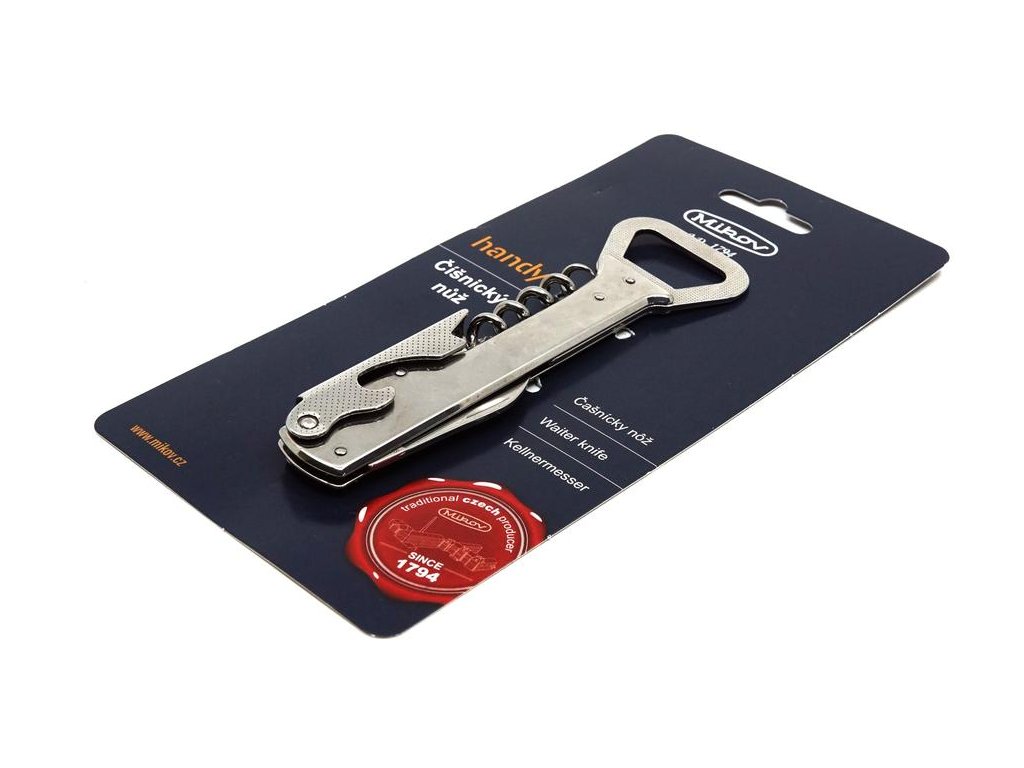 | Popis EN: | The original waiter's folding knife HANDY 236- NN-4 is made of all-metal from high-quality stainless steel, and is equipped with a high-quality corkscrew, PET bottle opener and crown cap opener and high-quality stainless steel blade. <br> Knife HANDY 236- NN-4 is suitable for quick and safe removal of cork from bottles, stoppers, etc. Knife HANDY is a suitable companion for camping, camping, barbecue or use in the garden. The HANDY knife is made of stainless steel type 420 with a hardness of 53-55 HRc. Number of functions: 4. The HANDY knife is very practical, compact and corrosion-resistant. Knife 236-NN-4 ČÍŠNICKÝ is a very high quality product from the knife company Mikov, its history dates back to 1794 and is located in the town of Mikulášovice, which is located in the National Park Bohemian Switzerland. |