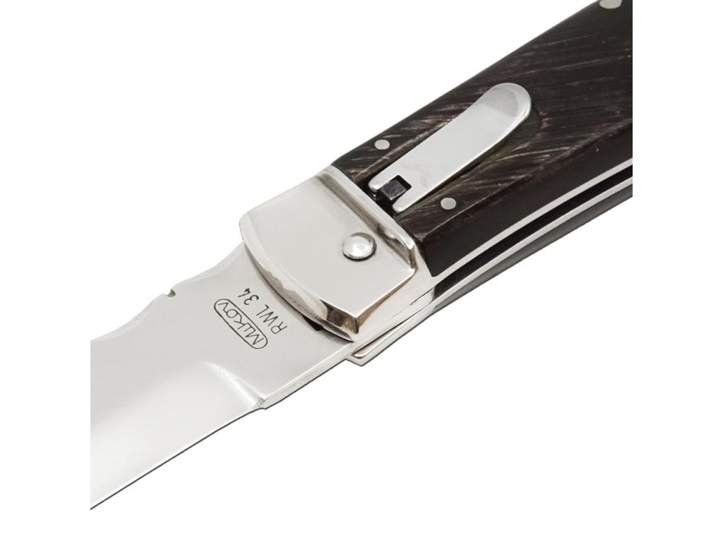 | Popis EN: | Switchblade PREDATOR knife 241-RR-1 / KP<br>Knife PREDATOR is automatic knife of the company Mikov, which is located in the heart of Bohemian Switzerland in the town of Mikulášovice. One of the many advantages of PREDATOR is that the knife can be opened quickly with one hand.<br>The knife blade is made of high-quality Swedish stainless steel RWL 34, which is produced by cooling powder steels with a hardness of 58-61 HRc. This steel excels in high hardness, long cutting ability and is resistant to breakage.<br>The knife has a decorated ridge spring and the upper part of the blade. The handle of the knife is made of a buffalo horn, which is known for its interesting pattern. Its shape not only guarantees a pleasant and firm grip, but also prevents the hand from slipping and injuries.<br>The knife has a luxurious and elegant design. Upon the customer's request, it is possible to produce PREDATOR in a left-handed version and it is also possible to engrave a logo or lettering on the blade.<br>This PREDATOR is only made in a one-piece design and comes with a luxurious leather case with a belt loop.<br> <br> Number of functions: 1<br> <br> Equipment: <br> Blade <br> <br> Material : <br> blade made of high quality stainless steel RWL34 with a hardness of 58-61 HRc <br> elegant handle of buffalo horn <br> <br> Manufacturer: Mikov Mikulášovice <br> <br>The damaged pen can be easily replaced according to the instructions <a href="https://www.mikov.cz/s18968021-navod-na-vymenu-pera-vyhazovaciho-noze?lang=en">HERE</a><br><br> |