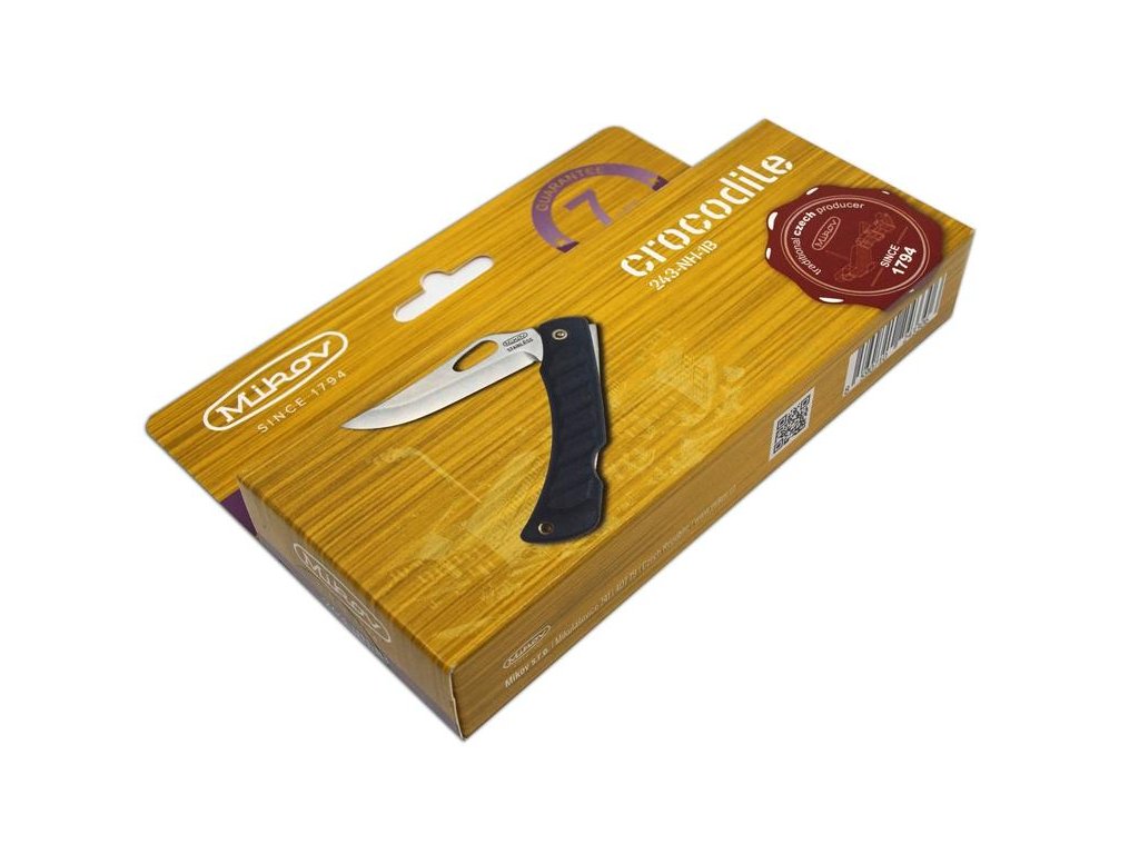 | Popis EN: | The pocket folding knife from the knife company Mikov CROCODILE 243-NH-1 / B with the most used backlock blade safety is a great pocket knife for everyday wear. <br> Examples of use can be camping, slicing food, use in nature. CROCODILE is a very light knife, which thanks to the modified handle fits perfectly in every hand. <br> Equipment: <br> CROCODILE parts are made of high-quality STAINLESS STEEL 420-52-55 HRc and modified very durable plastic handle, which fits perfectly into any hand <br> The blade offers high level of sharpness and unique shape, which is complemented by a high-quality handle with a modified design. Number of functions: 1 <br> CROCODILE is a high-quality product from the knife company Mikov, its history dates back to 1794 and is located in the town of Mikulášovice, which is located in the Czech Switzerland National Park. |
