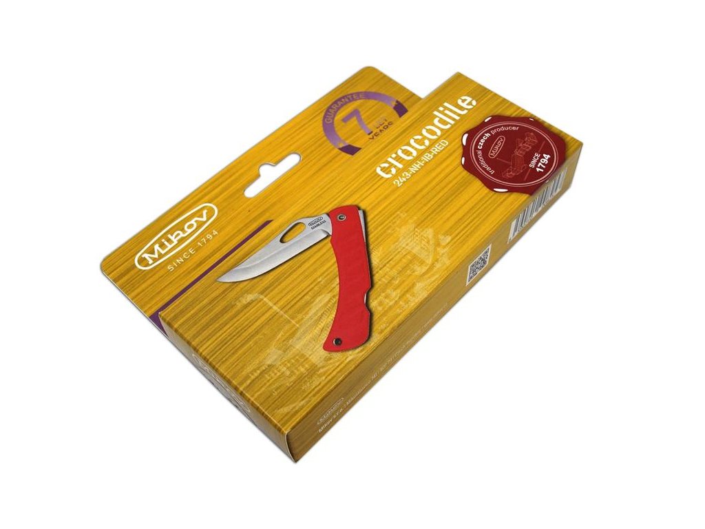 | Popis EN: | The pocket folding knife from the knife company Mikov CROCODILE 243-NH-1 / B with the most used backlock blade safety is a great pocket knife for everyday wear. <br> Examples of use can be camping, slicing food, use in nature. CROCODILE is a very light knife, which thanks to the modified handle fits perfectly in every hand. <br> Equipment: <br> CROCODILE parts are made of high-quality STAINLESS STEEL 420-52-55 HRc and modified very durable plastic handle, which fits perfectly into any hand <br> The blade offers high level of sharpness and unique shape, which is complemented by a high-quality handle with a modified design. Number of functions: 1 <br> CROCODILE is a high-quality product from the knife company Mikov, its history dates back to 1794 and is located in the town of Mikulášovice, which is located in the Czech Switzerland National Park. |