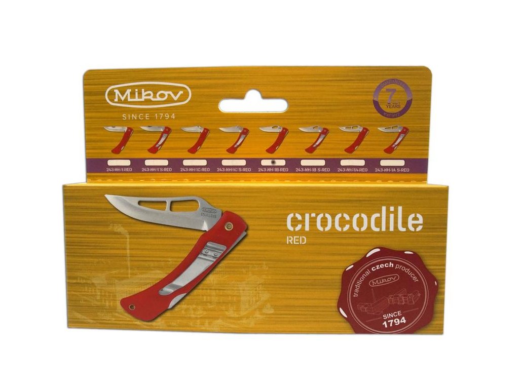 Kapesní zavírací nůž z nožířské firmy Mikov CROCODILE 243-NH-1/B s nejpoužívanější pojistkou čepele backlock je skvělý kapesní nůž na každodenní nošení. Příkladem využití může být táboření, tremping, krájení potravin, využití v přírodě. CROCODILE je velmi lehký nůž, který díky upravené střence výborně padne do každé ruky. Vybavení: CROCODILE díly jsou z velmi kvalitní nerezové oceli 420 o tvrdosti 52-55 HRc a upravené velmi odolné plastové střenky, která padne výborně do každé ruky. Čepel se pyšní svým vysokým ostřím a jedinečným tvarem, kterou doplňuje velmi kvalitní střenka s upraveným designem. Počet funkcí: 1