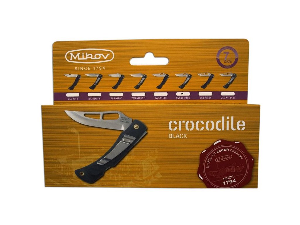 | Popis EN: | Knife CROCODILE 243-NH-1 /B CLIP with the most commonly used backlock is a great pocket knife for everyday use. Light knife with a clip, which thanks to the modified handle fits perfectly in every hand. <br> Equipment: <br> CROCODILE parts are made of high quality STAINLESS STEEL 420 and provides 52-55 HRc and modified very durable plastic handle, which fits perfectly in every hand. The excellent CROCODILE knife is also complemented by a clip for a more comfortable attachment of the knife. <br> The blade boasts a high blade and a unique shape, which is complemented by a high-quality handle with a modified design and clip. Number of functions: 2 <br> CROCODILE is a high-quality product from the knife company Mikov, its history dates back to 1794 and is located in the town of Mikulášovice, which is located in the Czech Switzerland National Park. |