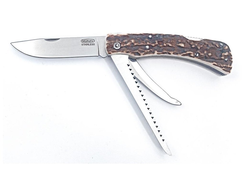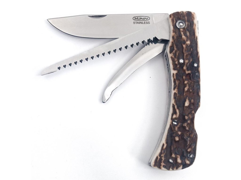 | Popis EN: | Hunting Folding Knife HUBERT 245-XP-3 / KP <br> When developing this knife, the traditional Czech manufacturer of knives Mikov joined the hunting club of St. Hubert. The result of the joint effort is a practical hunting folding knife.<br> <br> EQUIPMENT: <br> We used deer antlers to produce the HUBERT hunting knife handle. The blade is made of high quality 440A stainless steel with a hardness of 56HRc. The blade of the hunting knife HUBERT is secured by a safety backlock. Hunting knife HUBERT is also equipped with down blade and a large practical elongated saw with opening from the front of the knife - without nail, without fuse. Hunting knife HUBERT is supplied including a high-quality leather case with the Mikov logo. <br> Hunting Folding Knife HUBERT is a new and expected product for hunting public with a charitable contribution from the company Mikov, located in the Bohemian Switzerland. |
