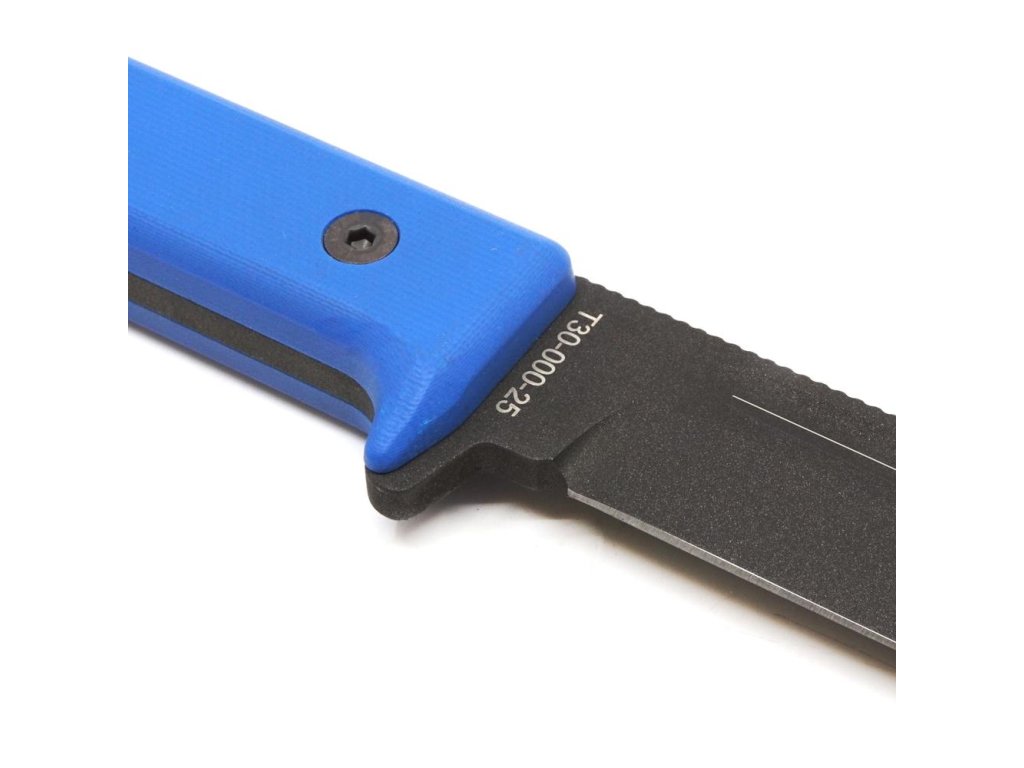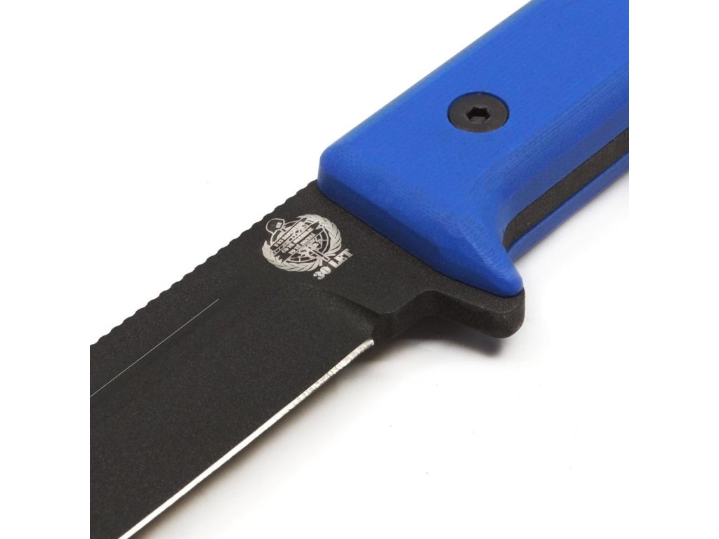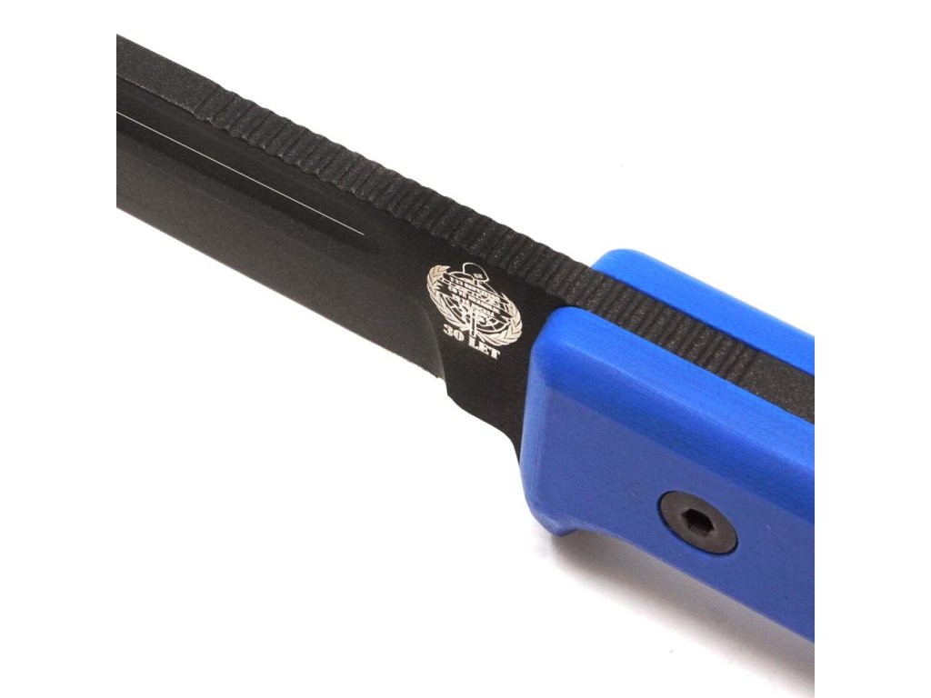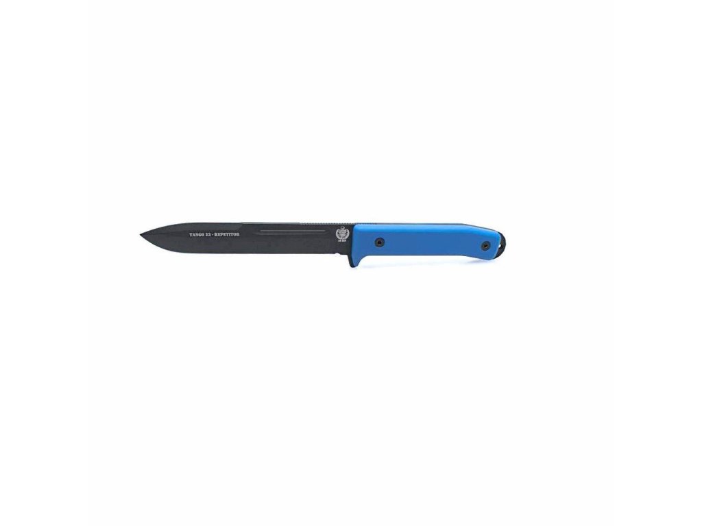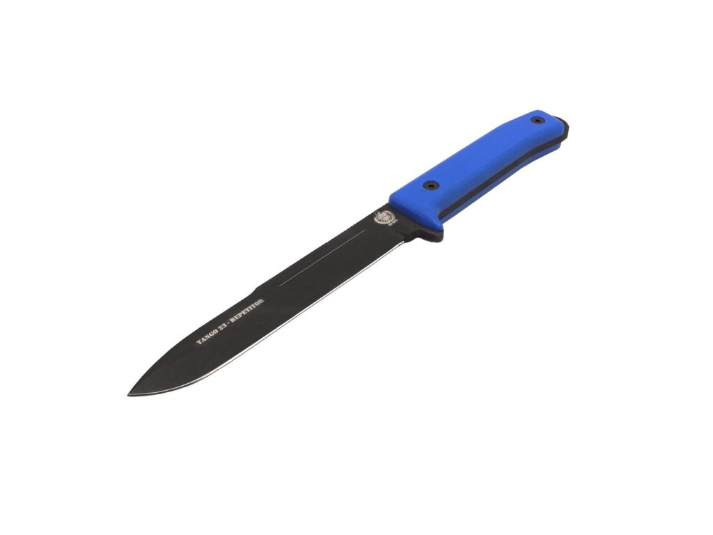 REPETITOR je integrální nůž s modrými střenkami z materiálu G10.
