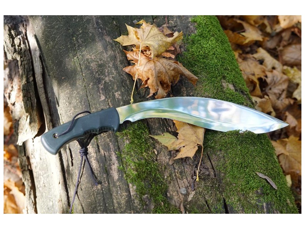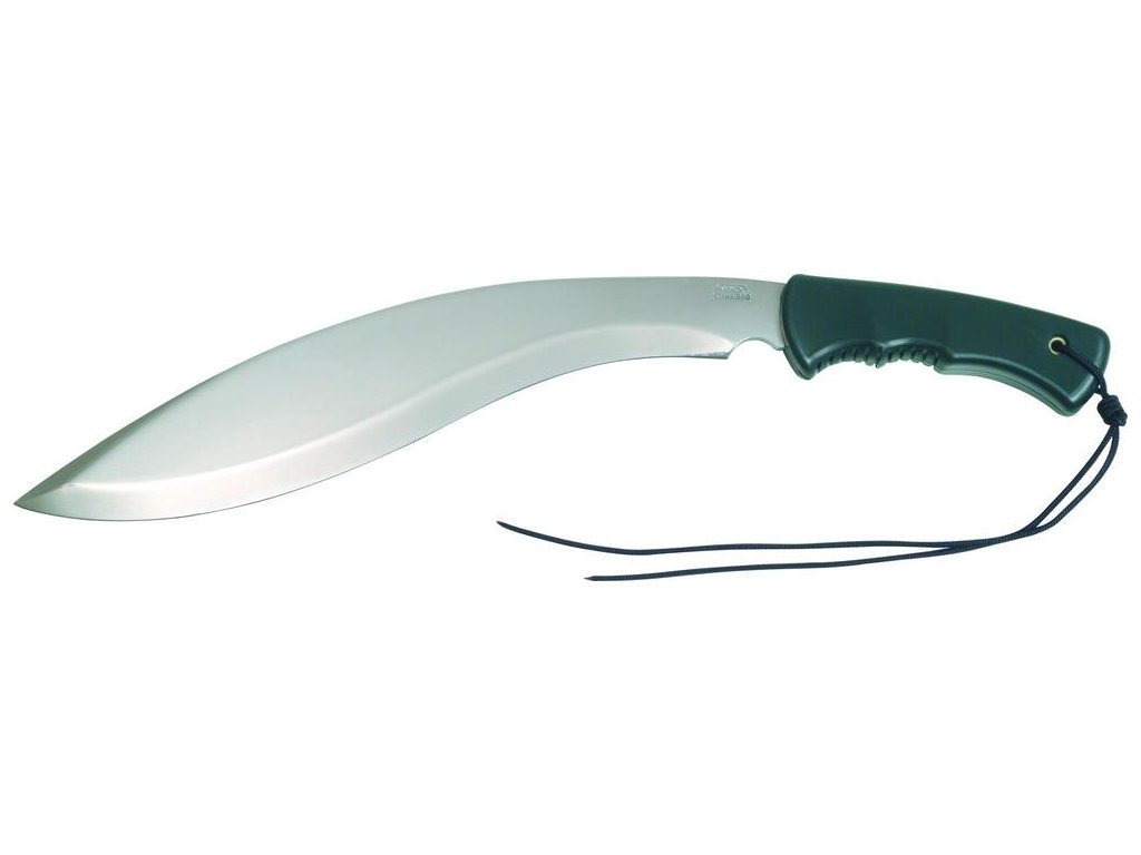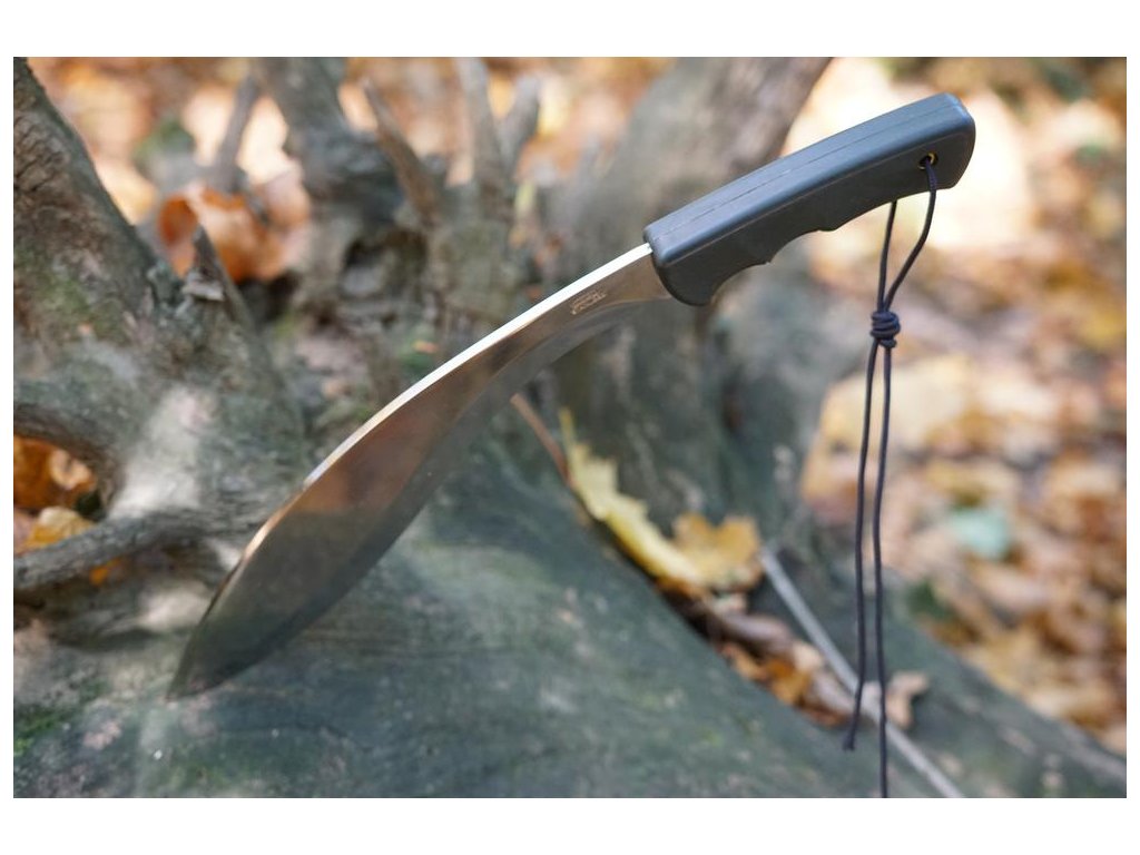 Nůž s názvem GURU má tvar klasické mačety zaobleného tvaru s ergonomickou rukojetí.